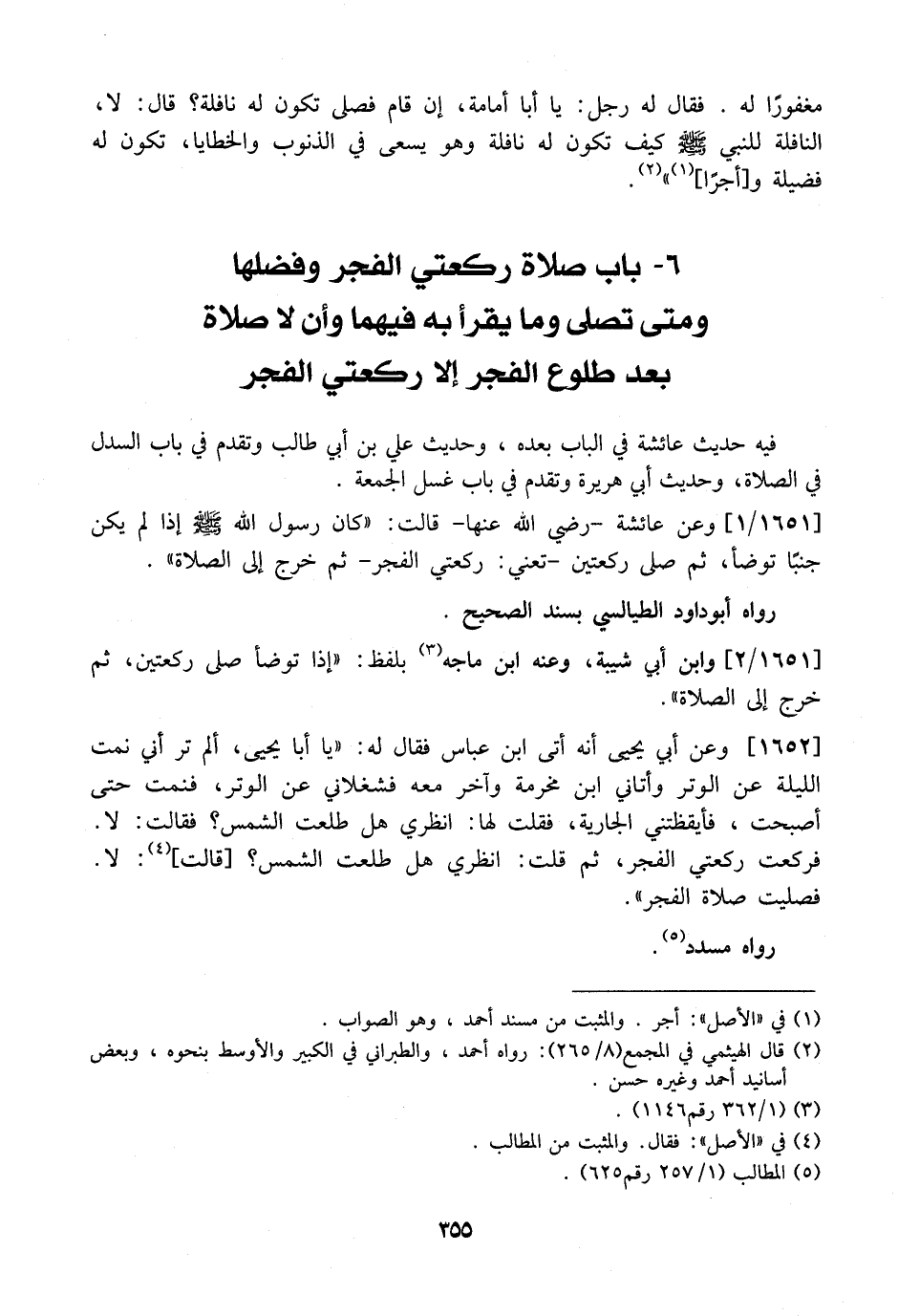 6- بَابُ صَلَاةِ رَكْعَتَيِ الْفَجْرِ وَفَضْلِهَا وَمَتَى تُصَلَّى ومايقرأ بِهِ فِيهِمَا وَأَنْ لَا صَلَاةَ بَعْدَ طُلُوعِ الْفَجْرِ إِلَّا رَكْعَتَيِ الْفَجْرِ