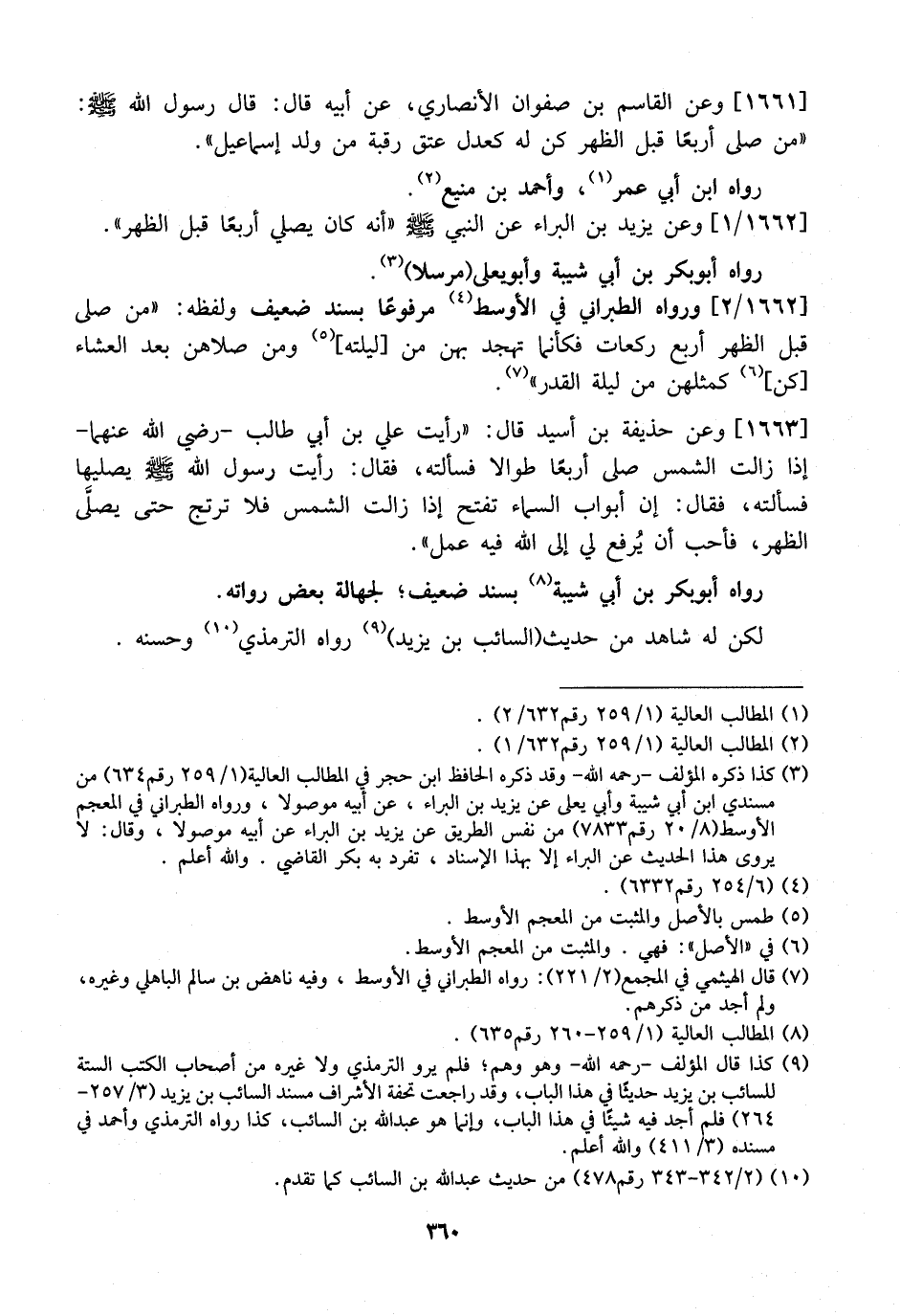 1663 - وَعَنْ حُذَيْفَةَ بْنِ أُسَيْدٍ قَالَ: "رَأَيْتُ عَلِيَّ بْنَ أَبِي طَالِبٍ- رضي الله عنهما- إِذَا زَالَتِ الشَّمْسُ صَلَّى أَرْبَعًا طُوَالًا فَسَأَلْتُهُ، فَقَالَ: رَأَيْتُ رَسُولَ اللَّهِ - صَلَّى اللَّهُ عَلَيْهِ وَسَلَّمَ - يُصَلِّيهَا فَسَأَلْتُهُ، فَقَالَ: إِنَّ أَبْوَابَ السَّمَاءِ تفتح إذا زالت الشمس فَلَا تَرْتَجُّ حَتَّى يصلَّى الظُّهْرَ، فَأُحِبُّ أَنْ يُرفع لِي إِلَى اللَّهِ فِيهِ عَمَلٌ.