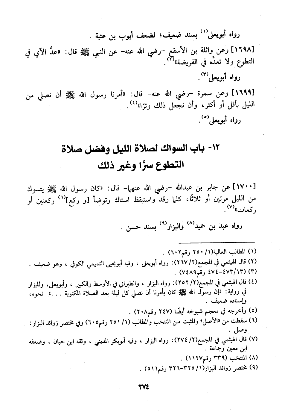 1700 - عَنْ جَابِرِ بْنِ عَبْدِ اللَّهِ- رَضِيَ اللَّهُ عَنْهُمَا- قَالَ: "كَانَ رَسُولُ اللَّهِ - صَلَّى اللَّهُ عَلَيْهِ وَسَلَّمَ - يَتَسَوَّكُ مِنَ اللَّيْلِ مرتين أو ثلاثًا، كلما رقد واستيقظ استاك وتوضأ أو ركع، ركعتين أو ركعات ".