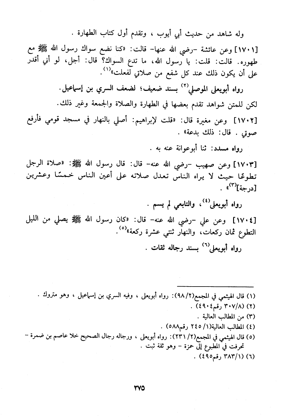رَوَاهُ أَبُو يَعْلَى الْمَوْصِلِيُّ بِسَنَدٍ ضَعِيفٍ لِضَعْفِ السَّرِيِّ بْنِ إِسْمَاعِيلَ.