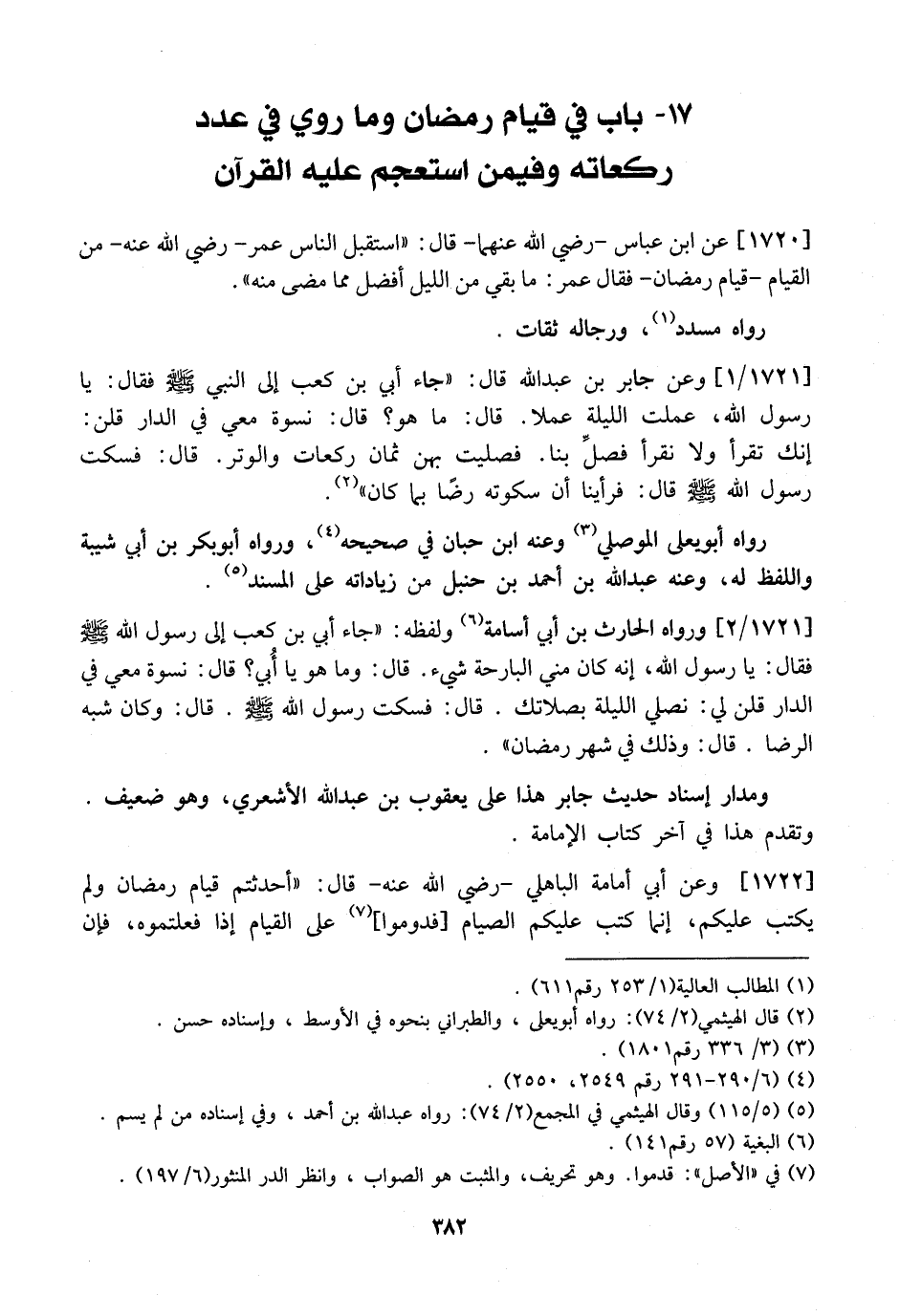17- بَابٌ فِي قِيَامِ رَمَضَانَ وَمَا رُوِيَ فِي عَدَدِ رَكَعَاتِهِ وَفِيمَنِ اسْتَعْجَمَ عَلَيْهِ الْقُرْآنُ