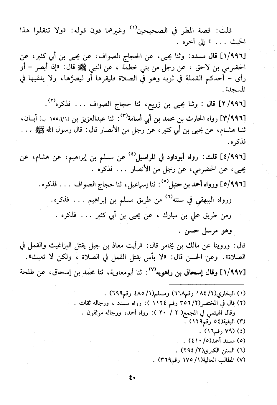 996/4 قُلْتُ: رَوَاهُ أَبُو دَاوُدَ فِي الْمَرَاسِيلِ عَنْ مُسْلِمِ بْنِ إِبْرَاهِيمَ، عَنْ هِشَامٍ، عَنْ يَحْيَى، عَنِ الْحَضْرَمِيِّ، عَنْ رَجُلٍ مِنَ الْأَنْصَارِ ... فذكره.
