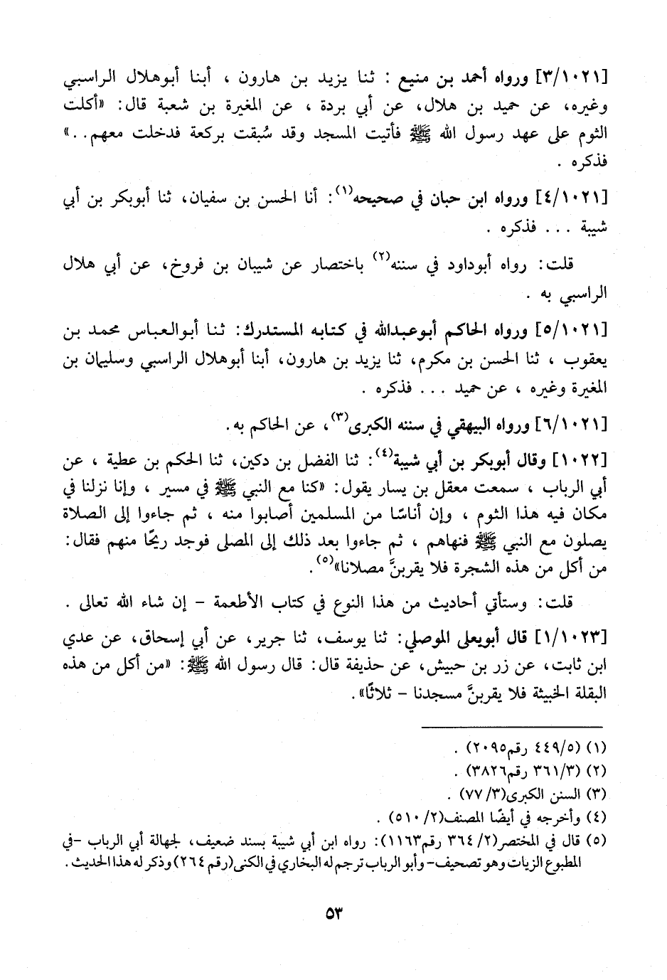 1021/3 وَرَوَاهُ أَحْمَدُ بْنُ مَنِيعٍ: ثَنَا يَزِيدُ بْنُ هَارُونَ، أبنا أبو هلال الراسبي وَغَيْرُهُ، عَنْ حُمَيْدِ بْنِ هِلَالٍ، عَنْ أَبِي بُرْدَةَ، عَنِ الْمُغِيرَةِ بْنِ شُعْبَةَ قَالَ: "أَكَلْتُ الثوم على عهد رسول الله اّفأتيت الْمَسْجِدَ وَقَدْ سُبقت بِرَكْعَةٍ فَدَخَلْتُ مَعَهُمْ.. " فَذَكَرَهُ.