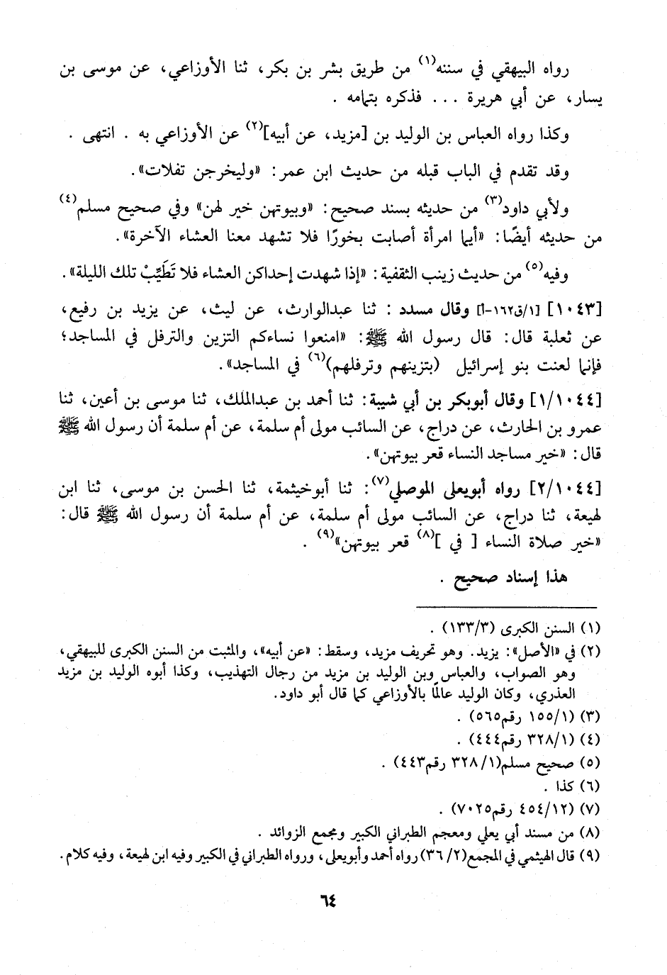1044/2 رَوَاهُ أَبُو يَعْلَى الْمُوصِلِيُّ: ثنا أَبُو خَيْثَمَةَ، ثَنَا الْحَسَنُ بْنُ مُوسَى، ثَنَا ابْنُ لَهِيعَةَ، ثَنَا دَرَّاجٌ، عَنِ السَّائِبِ مَوْلَى أُمِّ سَلَمَةَ، عَنْ أُمِّ سَلَمَةَ أَنّ رَسُولَ اللَّهِ - صَلَّى اللَّهُ عَلَيْهِ وَسَلَّمَ - قَالَ: "خَيْرُ صَلَاةِ النِّسَاءِ في قَعْرُ بُيُوتِهِنَّ ".