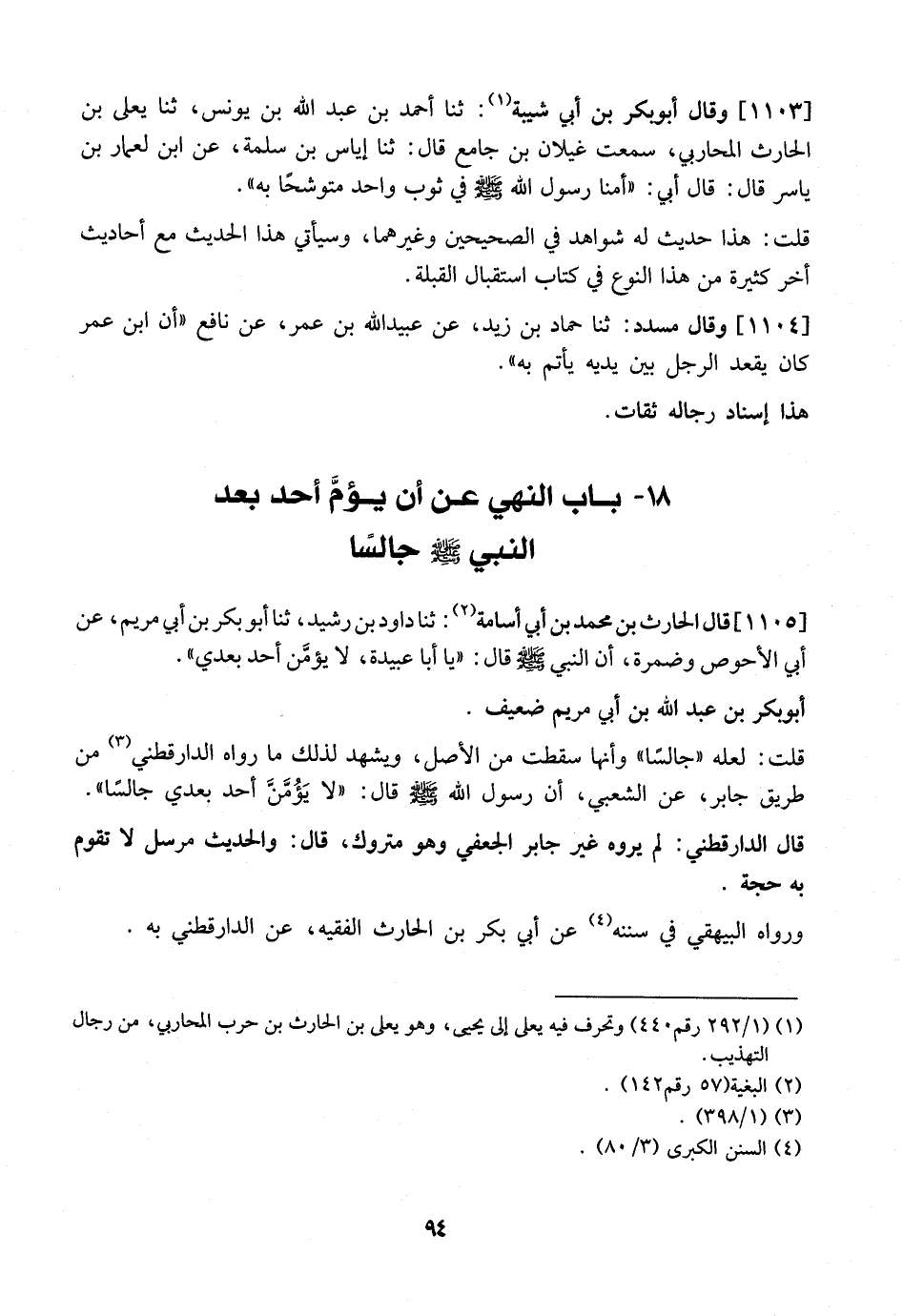 18- بَابُ النَّهْيِ عَنْ أَنْ يؤمَّ أَحَدٌ بَعْدَ النَّبِيِّ - صَلَّى اللَّهُ عَلَيْهِ وَسَلَّمَ - جَالِسًا