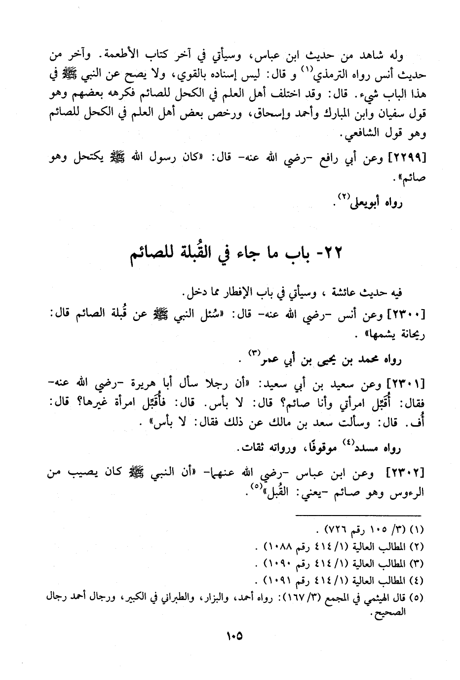 2302 - وَعَنِ ابْنِ عَبَّاسٍ- رَضِيَ اللَّهُ عَنْهُمَا- "أَنَّ النَّبِيَّ - صَلَّى اللَّهُ عَلَيْهِ وَسَلَّمَ - كَانَ يُصِيبُ مِنَ الرُّءُوسِ وَهُوَ صَائِمٌ- يَعْنِي: القُبل ".