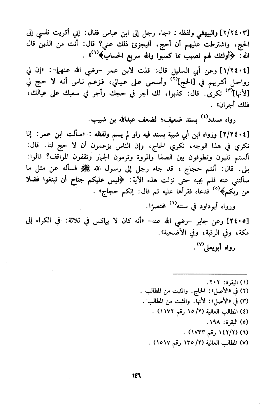 2404 / 2 - وَرَوَاهُ ابْنُ أَبِي شَيْبَةَ بِسَنَدٍ فِيهِ رَاوٍ لَمْ يُسَمَّ وَلَفْظُهُ: "سَأَلْتُ ابْنَ عُمَرَ: إِنَّا نُكْرِي فِي هَذَا الْوَجْهِ، نُكْرِي الْحَاجَّ، وَإِنَّ النَّاسَ يَزْعُمُونَ أن لا حج لنا. قال: أَلَسْتُمْ تُلَبُّونَ وَتَطُوفُونَ بَيْنَ الصَّفَا وَالْمَرْوَةِ وَتَرْمُونَ الْجِمَارَ وَتَقِفُونَ الْمَوَاقِفَ؟ قَالُوا: بَلَى. قَالَ: أَنْتُمْ حُجَّاجٌ، قَدْ جَاءَ رَجُلٌ إِلَى رَسُولِ اللَّهِ - صَلَّى اللَّهُ عَلَيْهِ وَسَلَّمَ - فَسَأَلَهُ عَنْ مِثْلِ مَا سَأَلْتَنِي عَنْهُ فَلَمْ يُجِبْهُ حَتَّى نَزَلَتِ هذه الْآيَةُ: ? لَيْسَ عَلَيْكُمْ جُنَاحٌ أَنْ تَبْتَغُوا فَضْلا من ربكم ? فَدَعَاهُ فَقَرَأَهَا عَلَيْهِ ثُمَّ قَالَ: إِنَّكُمْ حُجَّاجٌ ".