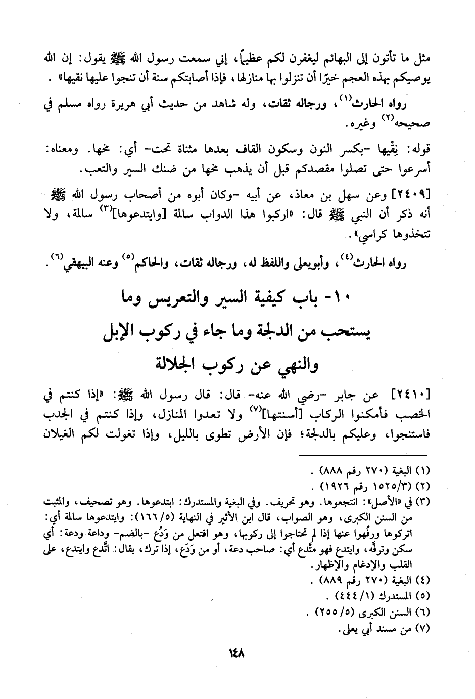 10- بَابٌ كَيْفِيَّةُ السَّيْرِ وَالتَّعْرِيسِ وَمَا يُسْتَحَبُّ مِنَ الدُّلْجَةِ وَمَا جَاءَ فِي رُكُوبِ الْإِبِلِ وَالنَّهْيِ عَنْ رُكُوبِ الْجَلَّالَةَ