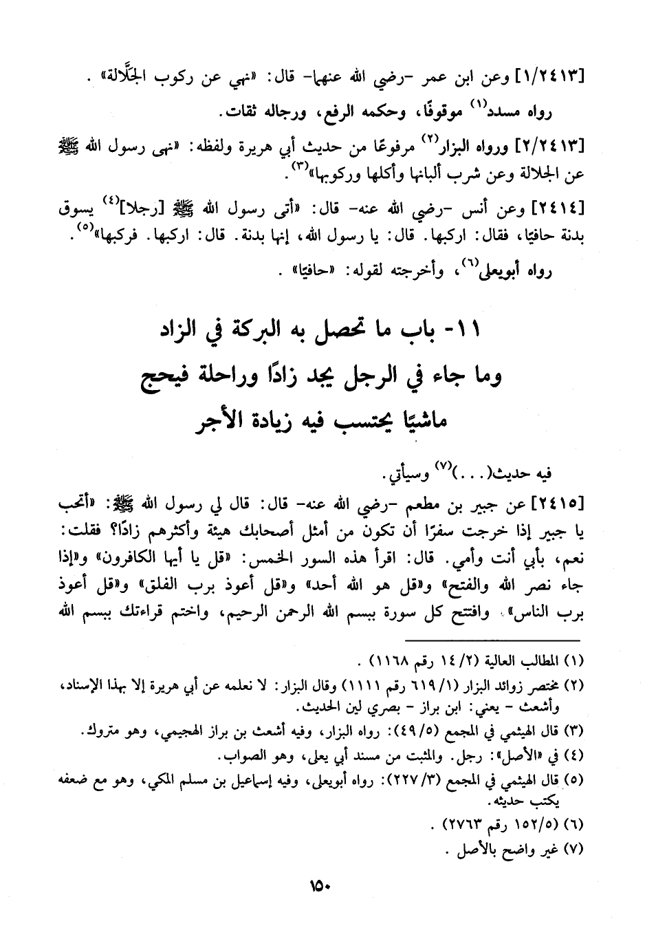 11- بَابٌ مَا تَحْصُلُ بِهِ الْبَرَكَةُ فِي الزَّادِ وَمَا جَاءَ فِي الرَّجُلِ يَجِدُ زَادًا وَرَاحِلَةً فَيَحُجُّ مَاشِيًا يَحْتَسِبُ فِيهِ زِيَادَةَ الأجر