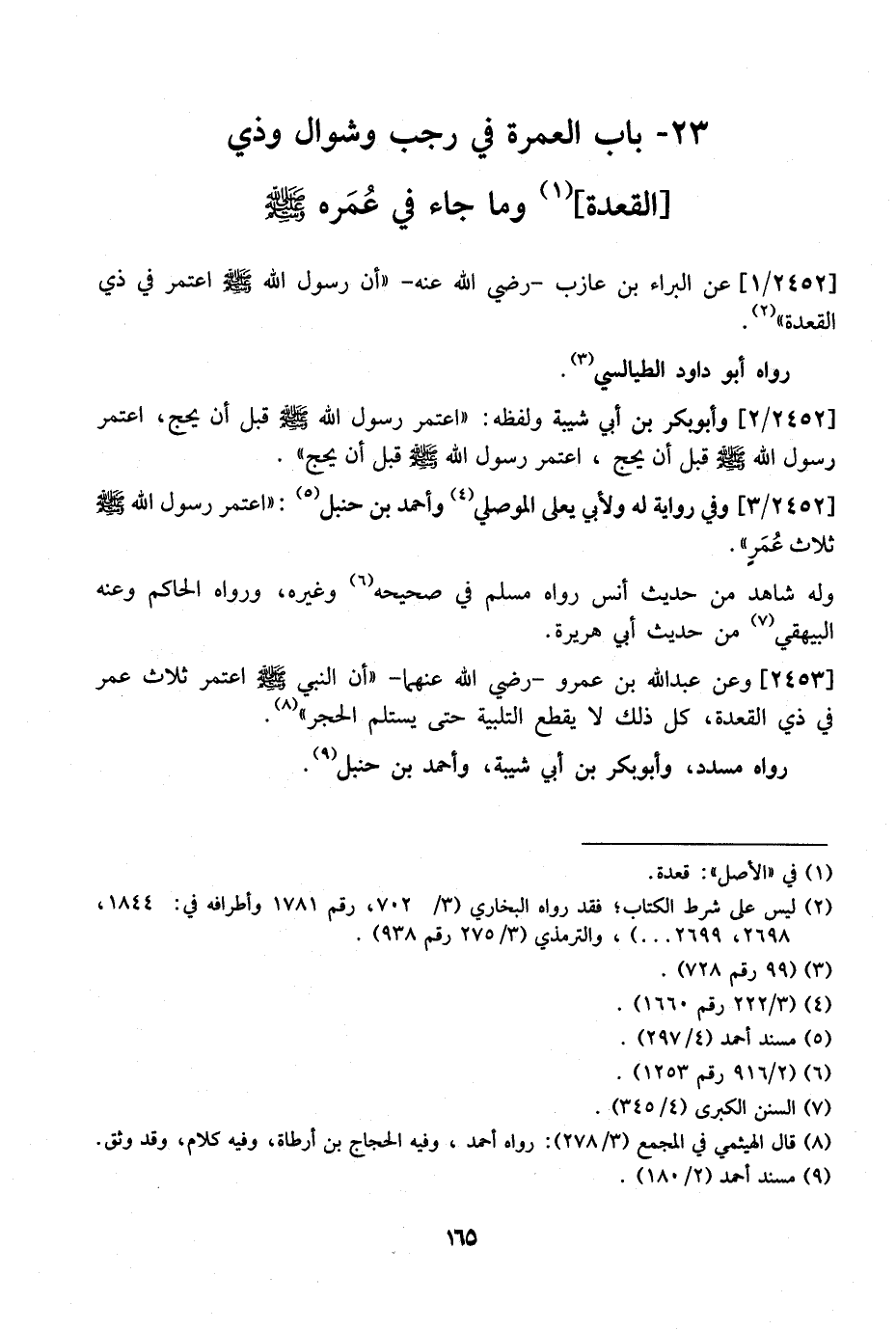 23- بَابٌ الْعُمْرَةُ فِي رَجَبٍ وَشَوَّالٍ وَذِي الْقِعْدَةِ وما جاء في عُمَره - صَلَّى اللَّهُ عَلَيْهِ وَسَلَّمَ -
