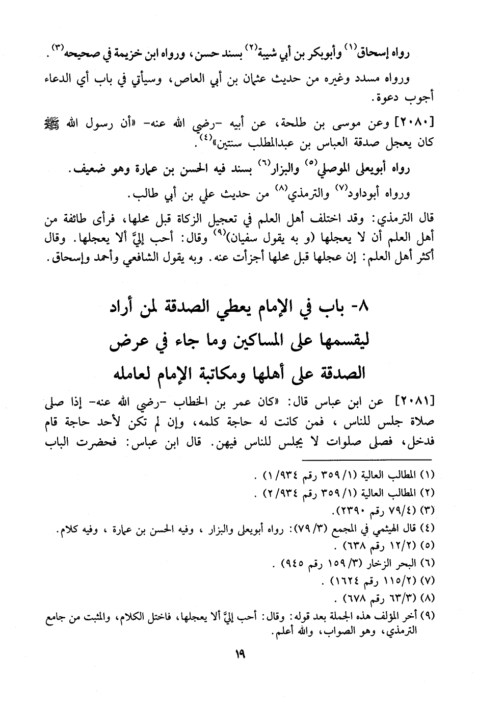 8- باب في الإمام يعطي الصدقة لمن أراد ليقسمها على المساكين وما جاء في عرض الصدقة على أهلها ومكاتبة الإمام لعامله