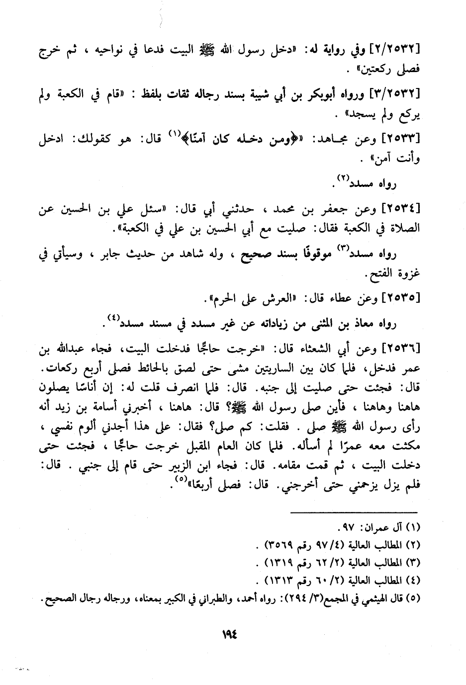 2532 / 3 - وَرَوَاهُ أَبُو بَكْرِ بْنُ أَبِي شَيْبَةَ بِسَنَدٍ رِجَالُهُ ثِقَاتٍ بِلَفْظٍ: "قَامَ فِي الْكَعْبَةِ وَلَمْ يَرْكَعْ وَلَمْ يَسْجُدْ".