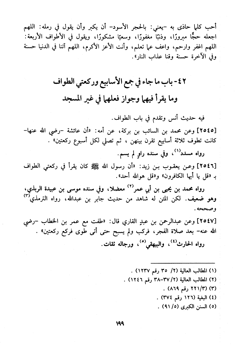2547 - وَعَنْ عَبْدِ الرَّحْمَنِ بْنِ عبدٍ الْقَارِي قَالَ: "طُفْتُ مَعَ عُمَرَ بْنِ الْخَطَّابِ- رَضِيَ اللَّهُ عَنْهُ- بَعْدَ صَلَاةِ الْفَجْرِ، فَرَكِبَ وَلَمْ يُسَبِّحْ حَتَّى أَتَى طُوًى فَرَكَعَ رَكْعَتَيْنِ ". رَوَاهُ الْحَارِثُ، وَالْبَيْهَقِيُّ، وَرِجَالُهُ ثِقَاتٌ.