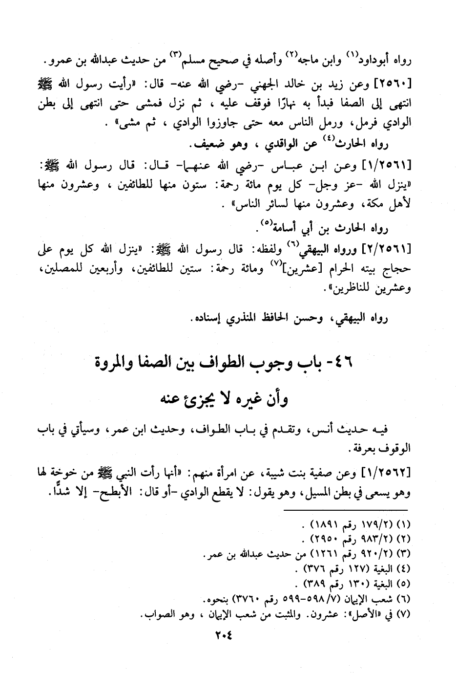 2561 / 2 - وَرَوَاهُ الْبَيْهَقِيُّ وَلَفْظُهُ: قَالَ رَسُولُ اللَّهِ - صَلَّى اللَّهُ عَلَيْهِ وَسَلَّمَ -: "يُنزل اللَّهُ كُلَّ يَوْمٍ عَلَى حُجَّاجِ بَيْتِهِ الْحَرَامِ عِشْرِينَ وِمِائَةَ رَحْمَةٍ: سِتِّينَ لِلطَّائِفِينَ، وَأَرْبَعِينَ لِلْمُصَلِّينَ، وَعِشْرِينَ لِلنَّاظِرِينَ ". رَوَاهُ الْبَيْهَقِيُّ، وَحَسَّنَ الْحَافِظُ الْمُنْذِرِيُّ إِسْنَادَهُ.