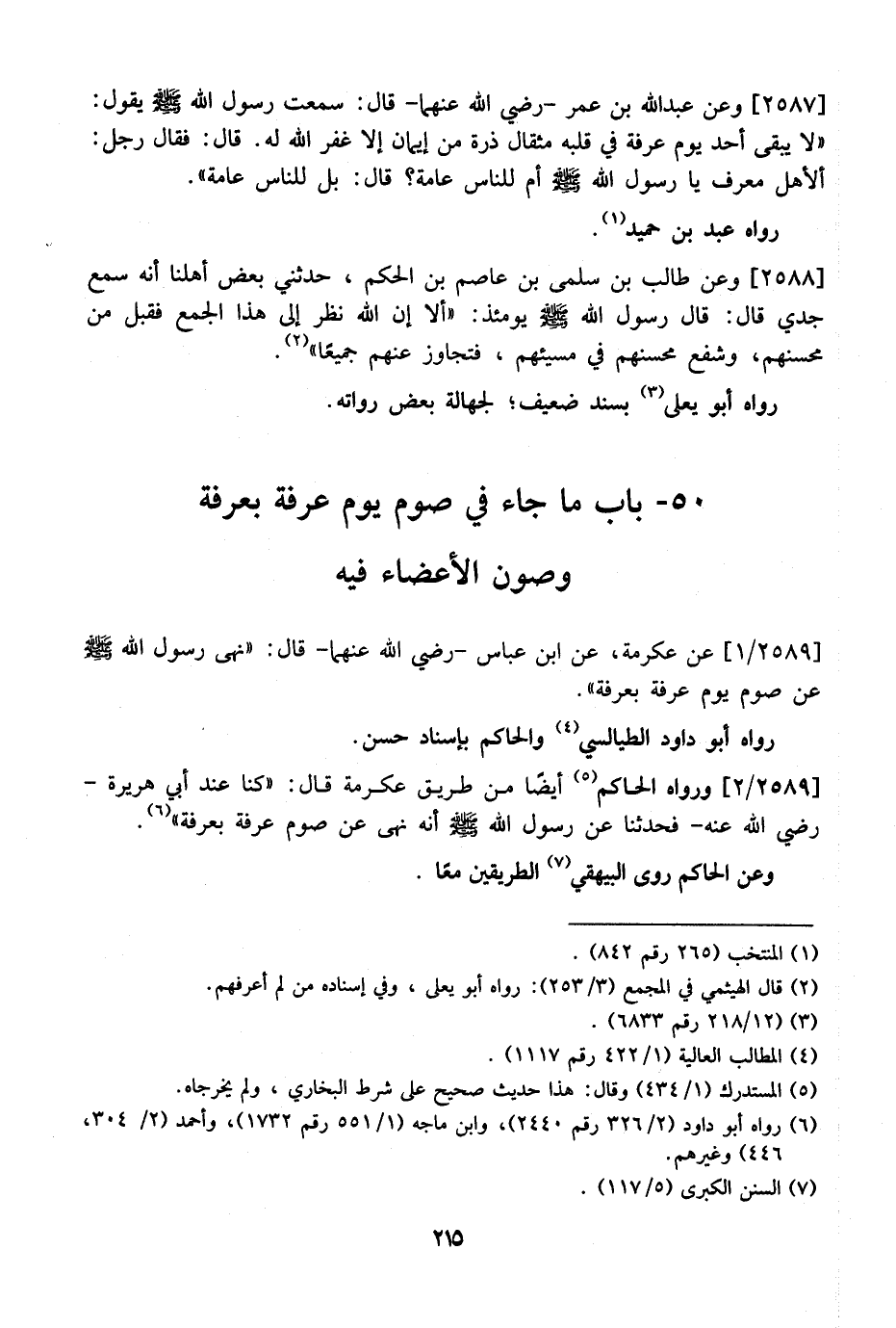2589 / 1 - عَنْ عِكْرِمَةَ، عَنِ ابْنِ عَبَّاسٍ- رَضِيَ اللَّهُ عَنْهُمَا- قَالَ: "نَهَى رَسُولُ اللَّهِ - صَلَّى اللَّهُ عَلَيْهِ وَسَلَّمَ - عَنْ صَوْمِ يَوْمِ عَرَفَةَ بِعَرَفَةَ". رَوَاهُ أَبُو دَاوُدَ الطَّيَالِسِيُّ وَالْحَاكِمُ بِإِسْنَادٍ حَسَنٍ.