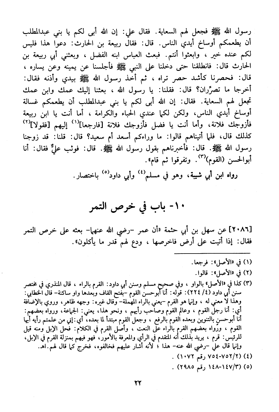 2086 - عَنْ سَهْلِ بْنِ أَبِي حُثْمَةَ "أَنَّ عُمَرَ- رَضِيَ اللَّهُ عَنْهُمَا- بَعَثَهُ عَلَى خِرْصِ التَّمْرِ فَقَالَ: إِذَا أَتَيْتَ عَلَى أَرْضٍ فَاخْرُصْهَا، وَدَعْ لَهُمْ قَدْرَ مَا يأكلون ".