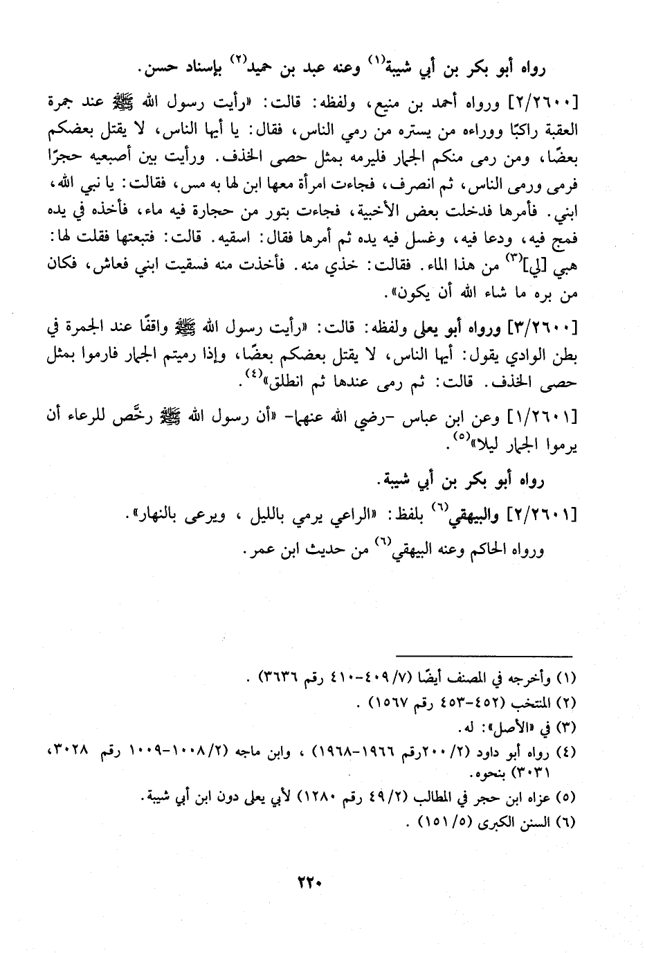 2601 / 1 - وعَنِ ابْنُ عَبَّاسٍ- رَضِيَ اللَّهُ عَنْهُمَا- "أَنّ رَسُولَ اللَّهِ - صَلَّى اللَّهُ عَلَيْهِ وَسَلَّمَ - رخَّص لِلرِّعَاءِ أَنْ يَرْمُوا الْجِمَارَ لَيْلًا".