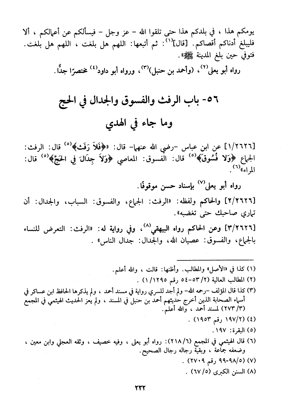 2626 / 2 - وَالْحَاكِمُ وَلَفْظُهُ: " الرَّفَثُ: الْجِمَاعُ وَالْفُسُوقُ: السِّبَابُ، وَالْجِدَالُ: أَنْ تُمَارِيَ صَاحِبَكَ حَتَّى تُغْضِبَهُ ".