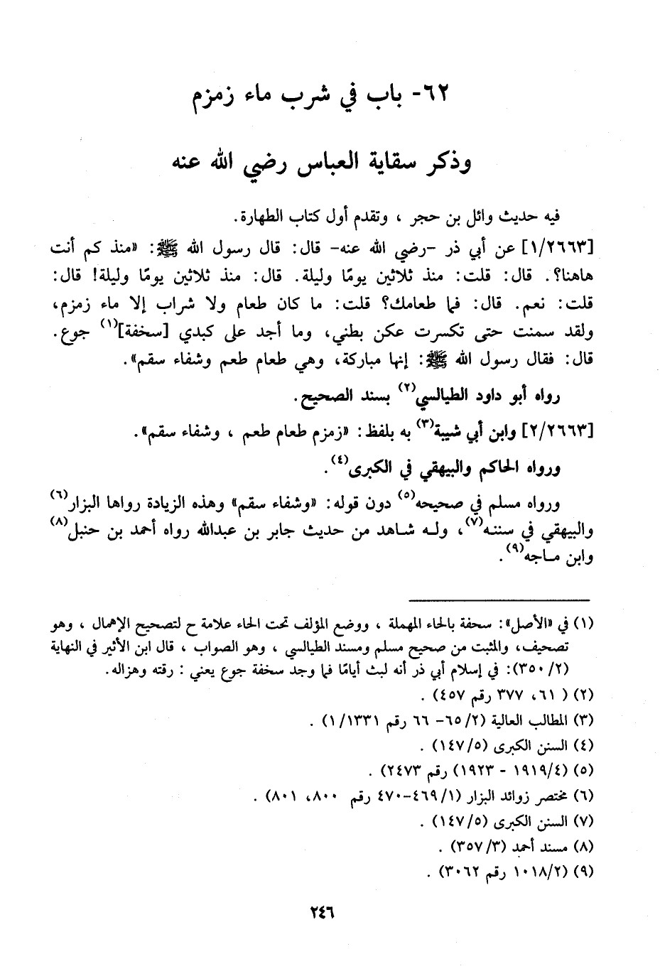 62- بَابٌ فِي شُرْبِ مَاءِ زَمْزَمَ وَذِكْرِ سِقَايَةِ الْعَبَّاسِ رَضِيَ اللَّهُ عَنْهُ