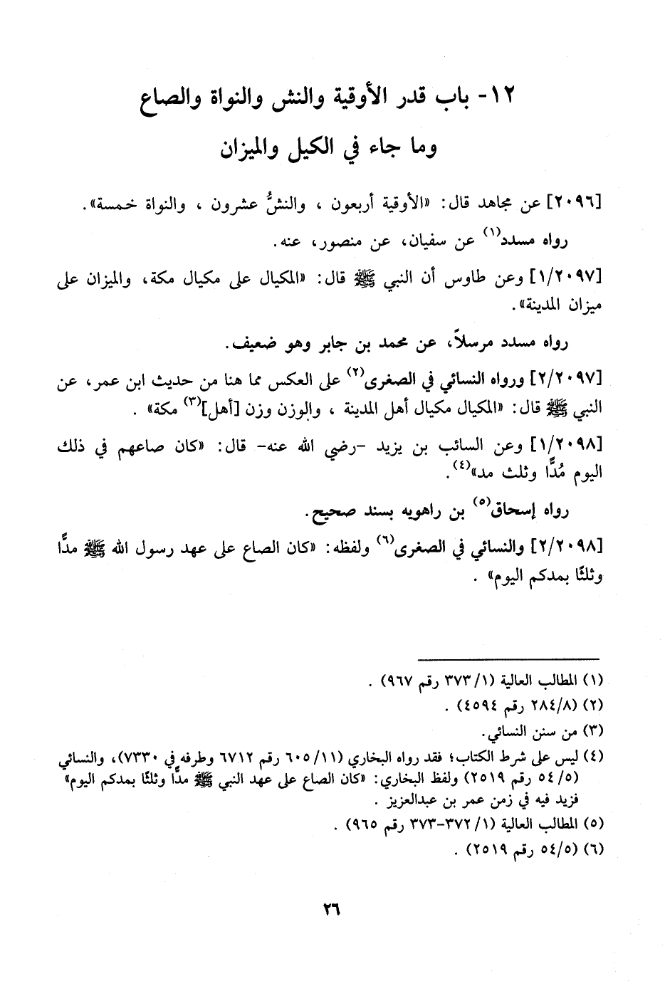 12- بَابُ قَدْرِ الْأُوقِيَةِ وَالنَّشُّ وَالنَّوَاةُ وَالصَّاعُ وَمَا جَاءَ فِي الْكَيْلِ وَالْمِيزَانِ