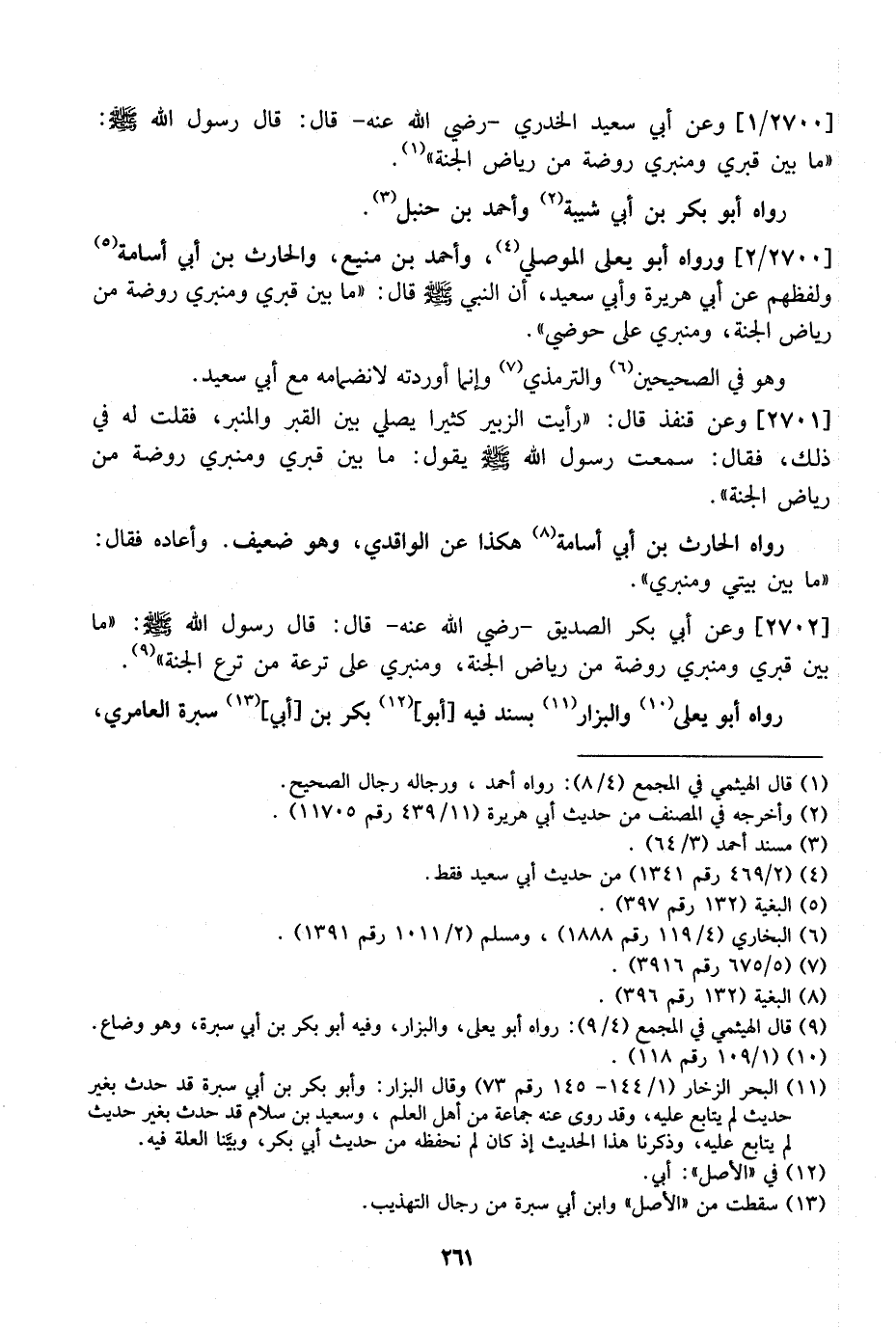 2700 / 2 - وَرَوَاهُ أَبُو يَعْلَى الْمُوصِلِيُّ، وَأَحْمَدُ بْنُ مَنِيعٍ، وَالْحَارِثُ بْنُ أَبِي أُسَامَةَ وَلَفْظُهُمْ عَنْ أَبِي هُرَيْرَةَ وَأَبِي سَعِيدٍ، أَنّ النَّبِيَّ - صَلَّى اللَّهُ عَلَيْهِ وَسَلَّمَ - قال: "مَا بَيْنَ قَبْرِي وَمِنْبَرِي رَوْضَةٌ مِنْ رِيَاضِ الْجَنَّةِ، وَمِنْبَرِي عَلَى حَوْضِي ".