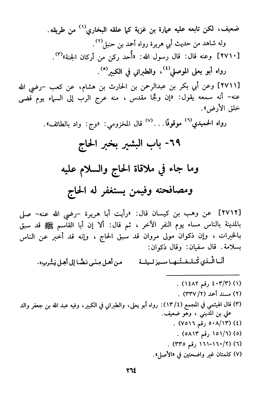 69- بَابٌ الْبَشِيرُ بِخَبَرِ الحاج وما جاء قي مُلَاقَاةِ الْحَاجِّ وَالسَّلَامِ عَلَيْهِ وَمُصَافَحَتِهِ وَفِيمَنْ يَسْتَغْفِرُ لَهُ الْحَاجُّ