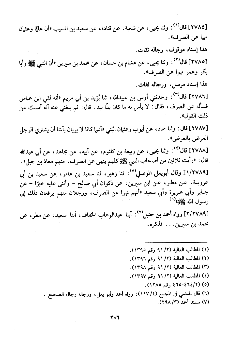 2785 - قَالَ: وَثَنَا يَحْيَى، عَنْ هِشَامِ بْنِ حَسَّانٍ، عَنْ مُحَمَّدِ بْنِ سِيرِينَ "أَنّ النَّبِيَّ - صَلَّى اللَّهُ عَلَيْهِ وَسَلَّمَ - وَأَبَا بَكْرٍ وَعُمَرَ نَهَوْا عَنِ الصَّرْفِ ". هذا إسناد مرسل، ورجاله ثقات.