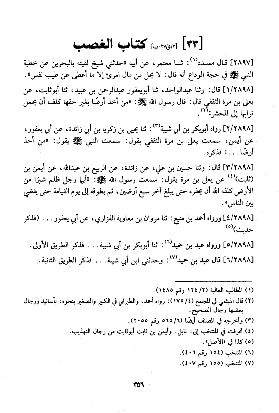 2898 / 2 - رَوَاهُ أَبُو بَكْرِ بْنُ أَبِي شَيْبَةَ: ثنا يَحْيَى بْنُ زَكَرِيَّا بْنِ أَبِي زَائِدَةَ، عَنْ أَبِي يَعْفُورٍ، عَنْ أَيْمَنَ، سَمِعْتُ يَعْلَى بْنَ مُرَّةَ الثَّقَفِيَّ يَقُولُ: سَمِعْتُ النَّبِيَّ - صَلَّى اللَّهُ عَلَيْهِ وَسَلَّمَ - يَقُولُ: "مَنْ أَخَذَ أر ضا ... " فذ كره.