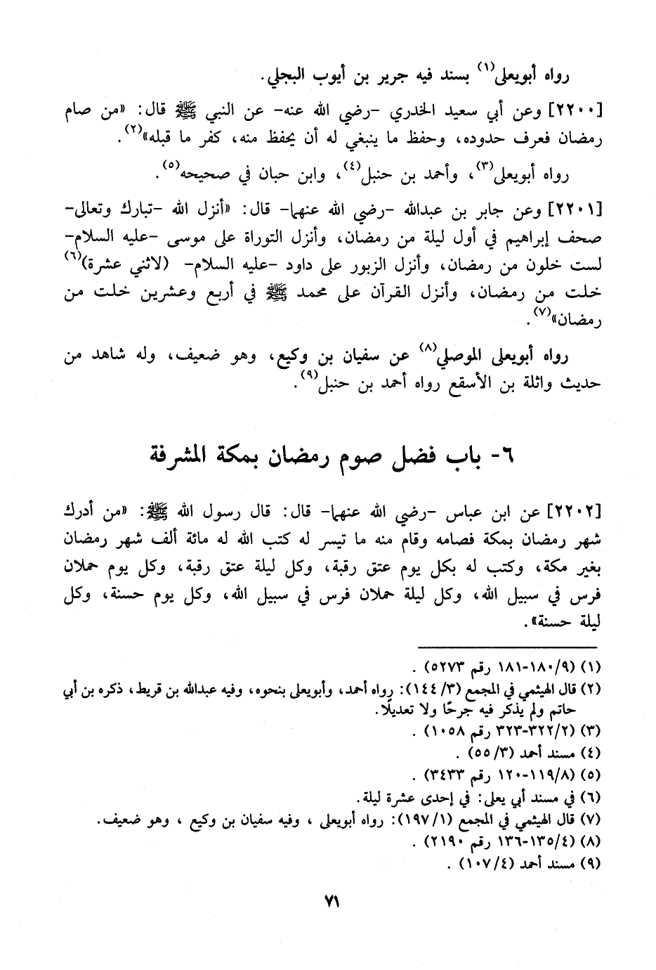 2200 - وَعَنْ أَبِي سَعِيدٍ الْخُدْرِيِّ- رَضِيَ اللَّهُ عَنْهُ- عَنِ النَّبِيِّ - صَلَّى اللَّهُ عَلَيْهِ وَسَلَّمَ - قَالَ: "مَنْ صَامَ رَمَضَانَ فَعَرَفَ حُدُودَهُ، وَحَفِظَ مَا يَنْبَغِي لَهُ أَنْ يَحْفَظَ مِنْهُ، كَفَّرَ مَا قَبْلَهُ ". رَوَاهُ أَبُو يَعْلَى، وَأَحْمَدُ بْنُ حَنْبَلٍ، وَابْنُ حِبَّانَ فِي صَحِيحِهِ.