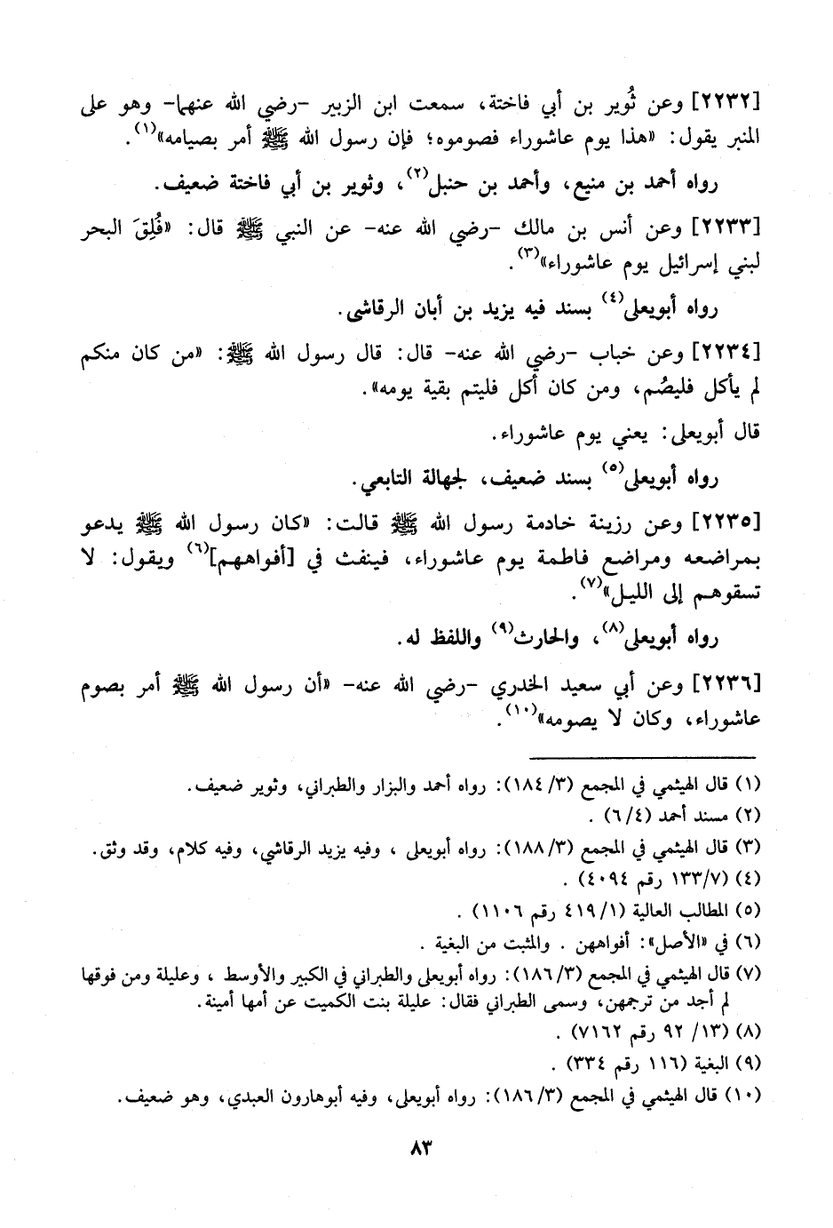 2232 - وَعَنْ ثُوير بْنِ أَبِي فَاخِتَةَ، سَمِعْتُ ابْنَ الزُّبَيْرِ- رَضِيَ اللَّهُ عَنْهُمَا- وَهُوَ عَلَى الْمِنْبَرِ يَقُولُ: "هَذَا يَوْمُ عَاشُورَاءَ فَصُومُوهُ فَإِنَّ رَسُولَ اللَّهِ - صَلَّى اللَّهُ عَلَيْهِ وَسَلَّمَ - أَمَرَ بِصِيَامِهِ ".