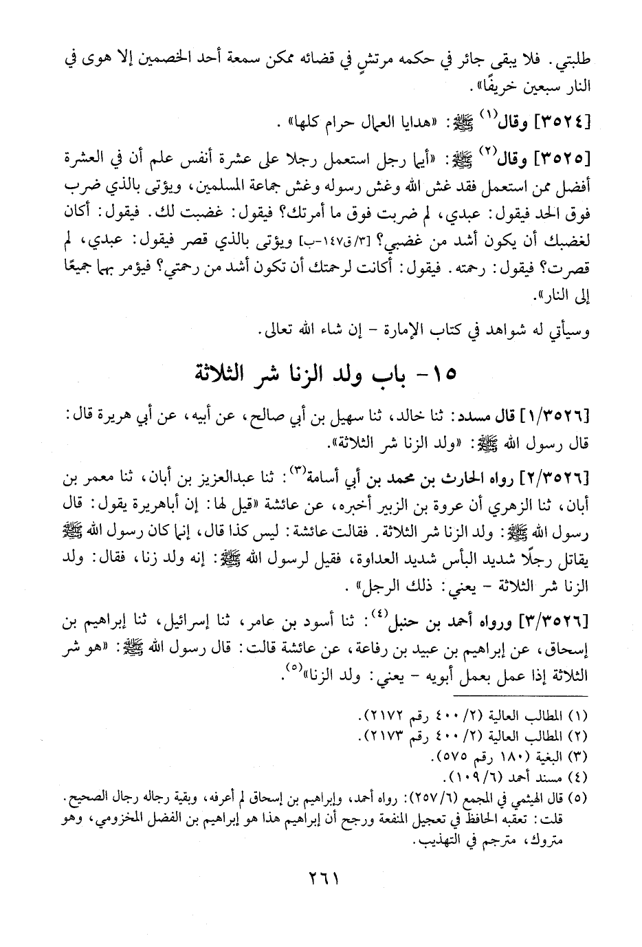 3526 / 2 - - رَوَاهُ الْحَارِثُ بْنُ مُحَمَّدِ بْنِ أَبِي أُسَامَةَ: ثَنَا عَبْدُ الْعَزِيزِ بْنُ أَبَانٍ، ثَنَا مَعْمَرُ بْنُ أَبَانٍ، ثنا الزُّهْرِيُّ أَنَّ عُرْوَةَ بْنَ الزُّبَيْرِ أَخْبَرَهُ، عَنْ عائشة {قيل لها: إن أباهريرة يَقُولُ: قَالَ رَسُولُ اللَّهِ - صَلَّى اللَّهُ عَلَيْهِ وَسَلَّمَ -: وَلَدُ الزِّنَا شَرُّ الثَّلَاثَةِ. فَقَالَتْ عَائِشَةُ: ليس كذا قَالَ، إِنَّمَا كَانَ رَسُولُ اللَّهِ - صَلَّى اللَّهُ عَلَيْهِ وَسَلَّمَ - يُقَاتِلُ رَجُلًا شَدِيدَ الْبَأْسِ شَدِيدَ العداوة، فقيل لرسول الله - صلى الله عليه وسلم -: إِنَّهُ وَلَدُ زِنًا، فَقَالَ: وَلَدُ الزِّنَا شَرُّ الْثَلَاثَةٍ- يَعْنِي: ذَلِكَ الرَّجُلَ} .