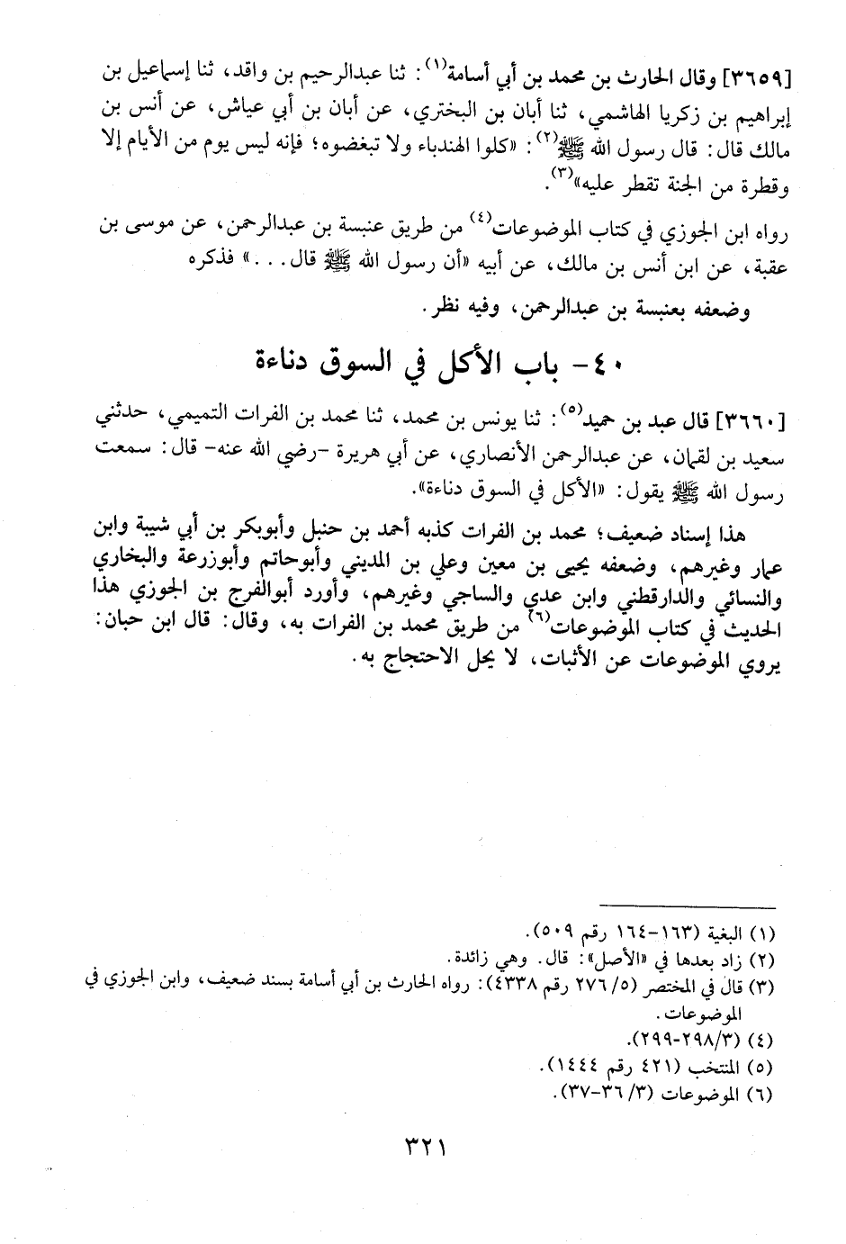 3659 - - وَقَالَ الْحَارِثُ بْنُ مُحَمَّدِ بْنِ أَبِي أُسَامَةَ: ثنا عَبْدُ الرَّحِيمِ بْنُ وَاقِدٍ، ثنا إِسْمَاعِيلُ بْنُ إِبْرَاهِيمَ بْنِ زَكَرِيَّا الْهَاشِمِيُّ، ثنا أَبَانُ بْنُ الْبَخْتَرِيِّ، عَنْ أَبَانَ بْنِ أَبِي عَيَّاشٍ عَنْ أَنَسِ بْنِ مَالِكٍ قَالَ: قَالَ رَسُولُ اللَّهِ- صَلَّى اللَّهُ عَلَيْهِ وَسَلَّمَ -: "كُلُوا الْهِنْدِبَاءَ وَلَا تُبْغِضُوهُ؟ فَإِنَّهُ لَيْسَ يَوْمٌ مِنَ الْأَيَّامِ إِلَّا وَقَطْرَةٌ مِنَ الْجَنَّةِ تَقْطُرُ عَلَيْهِ.