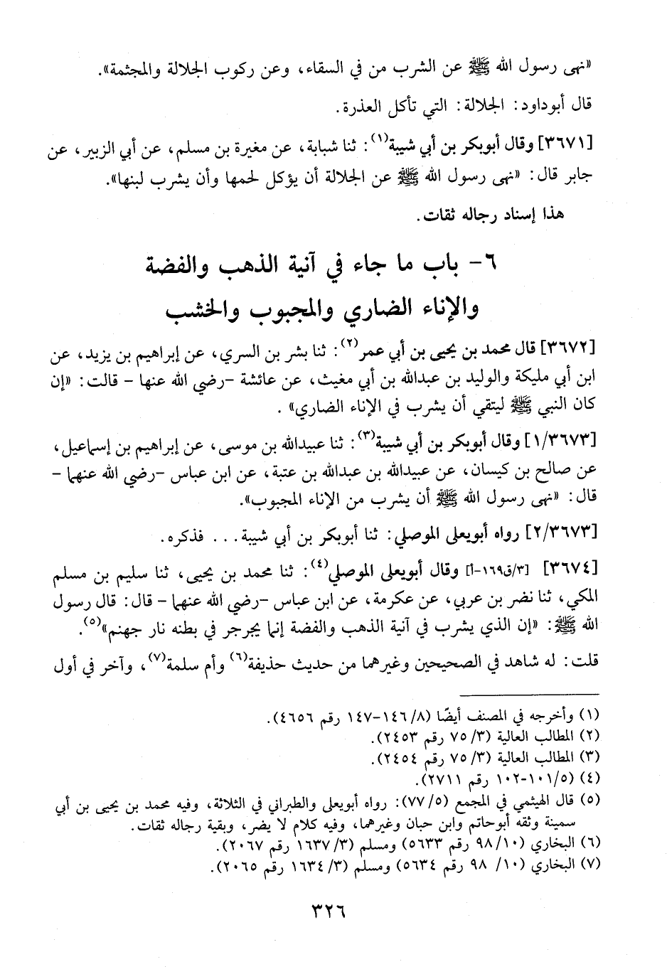 3673 / 1 - وَقَالَ أَبُو بَكْرِ بْنُ أَبِي شَيْبَةَ: ثنا عُبَيْدُ اللَّهِ بْنُ مُوسَى، عَنْ إِبْرَاهِيمَ بْنِ إِسْمَاعِيلَ، عَنْ صَالِحِ بْنِ كَيْسَانَ، عَنْ عُبَيْدِ اللَّهِ بْنِ عَبْدِ اللَّهِ بْنِ عُتْبَةَ، عَنِ ابْنِ عَبَّاسٍ- رَضِيَ اللَّهُ عَنْهُمَا- قَالَ: "نَهَى رَسُولُ اللَّهِ - صَلَّى اللَّهُ عَلَيْهِ وَسَلَّمَ - أَنْ يُشْرَبَ مِنَ الْإِنَاءِ الْمَجْبُوبِ ".