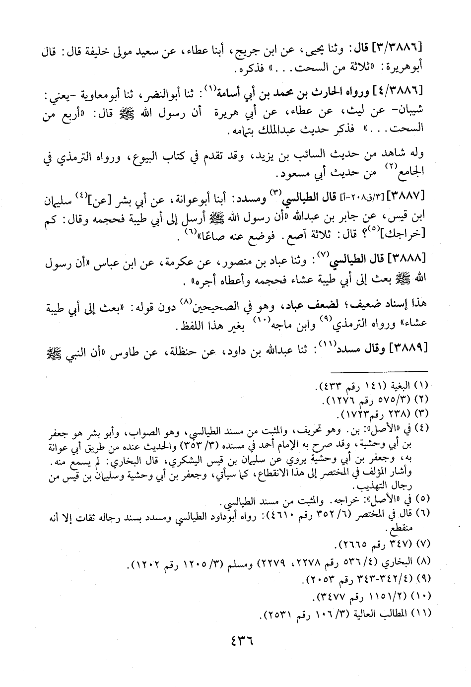 3887 -[3/ ق 208-أ] قال الطيالسي ومسدد: أبنا أَبُو عَوَانَةَ، عَنْ أَبِي بِشْرٍ [عَنْ] سُلَيْمَانَ ابن قَيْسٍ، عَنْ جَابِرِ بْنِ عَبْدِ اللَّهِ "أَنّ رَسُولَ اللَّهِ - صَلَّى اللَّهُ عَلَيْهِ وَسَلَّمَ - أَرْسَلَ إلى أبي طيبة فحجمه وقال: كم [خراجك] ؟ قَالَ: ثَلَاثَةُ آصُعٍ. فَوَضَعَ عَنْهُ صَاعًا".