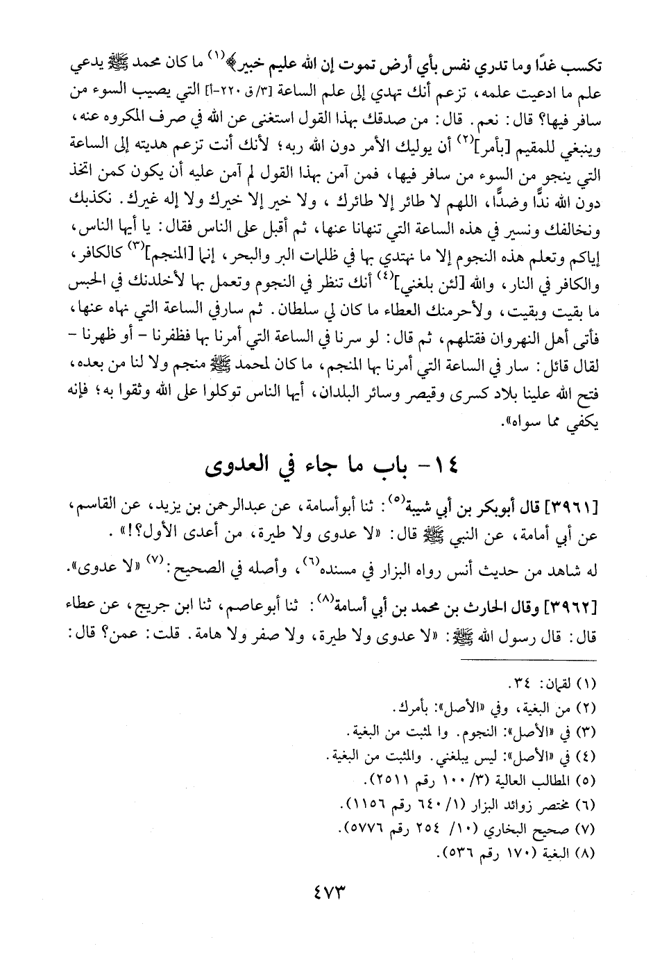 3962 - وَقَالَ الْحَارِثُ بْنُ مُحَمَّدِ بْنِ أَبِي أُسَامَةَ: ثنا أَبُو عَاصِمٍ، ثنا ابْنُ جُرَيْجٍ، عَنْ عَطَاءٍ قَالَ: قَالَ رَسُولُ اللَّهِ - صَلَّى اللَّهُ عَلَيْهِ وَسَلَّمَ -: "لَا عَدْوَى وَلَا طِيَرَةَ، وَلَا صفر ولا هامة. قلت: عمن؟ قال: