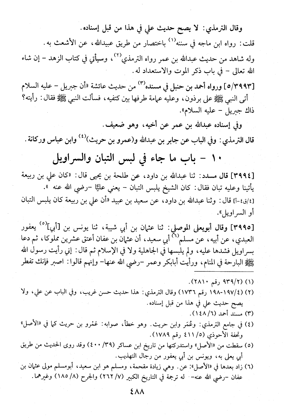 3993 / 5 - وَرَوَاهُ أَحْمَدُ بْنُ حَنْبَلٍ فِي مُسْنَدِهِ مِنْ حديث عائشة "أن جبريل -عليه السلام أتى النبي - صَلَّى اللَّهُ عَلَيْهِ وَسَلَّمَ - على برذون، وعليه عمامة طرفها بين كتفيه، فَسَأَلَتِ النَّبِيَّ - صَلَّى اللَّهُ عَلَيْهِ وَسَلَّمَ - فَقَالَ: رأيته؟ ذاك جبريل- عليه السلام".