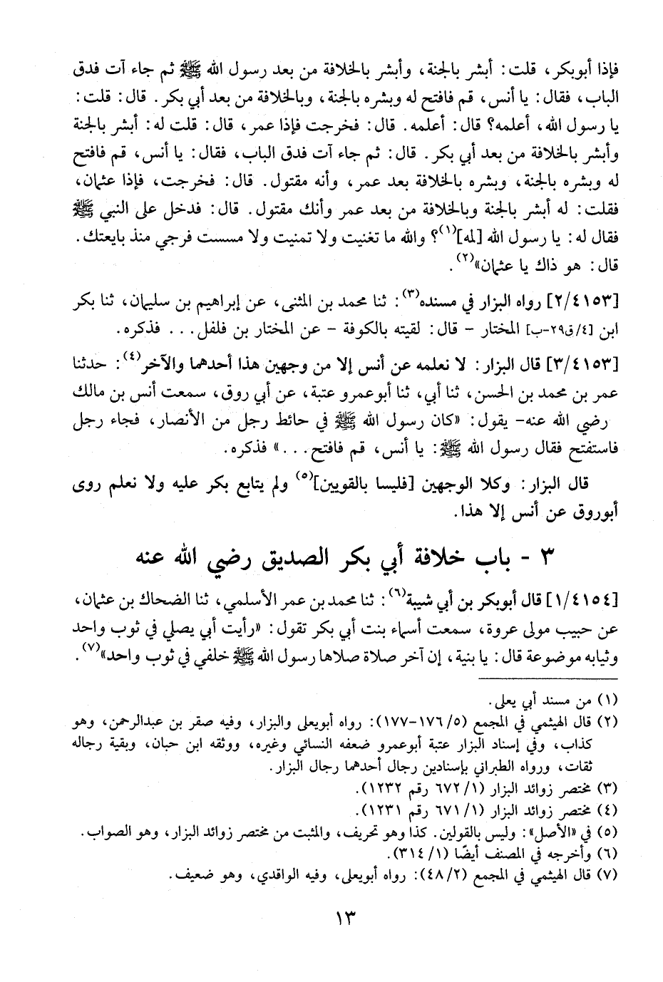 4153 / 3 - قَالَ الْبَزَّارُ: لَا نَعْلَمُهُ عَنْ أَنَسٍ إِلَّا مِنْ وَجْهَيْنِ هَذَا أَحَدُهُمَا والاَخر: حدثنا عُمَرُ بْنُ مُحَمَّدِ بْنِ الْحَسَنِ، ثنا أَبِي، ثنا أَبُو عَمْرٍو عُتْبَةُ، عَنْ أَبِي رَوْقٍ، سَمِعْتُ أَنَسَ بْنَ مَالِكٍ رَضِيَ اللَّهُ عَنْهُ- يَقُولُ: "كَانَ رَسُولُ اللَّهِ - صَلَّى اللَّهُ عَلَيْهِ وَسَلَّمَ - فِي حَائِطِ رَجُلٍ مِنَ الْأَنْصَارِ، فَجَاءَ رَجُلٌ فَاسْتَفْتَحَ فَقَالَ رَسُولُ اللَّهِ - صَلَّى اللَّهُ عَلَيْهِ وَسَلَّمَ -: يَا أَنَسُ، قُمْ فَافْتَحْ ... " فذكره.