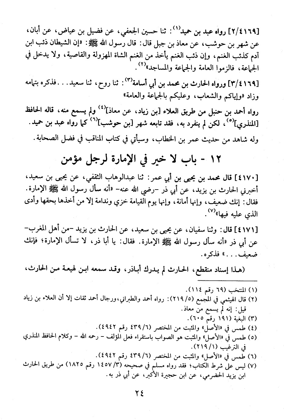 4169 / 3 - وَرَوَاهُ الْحَارِثُ بْنُ مُحَمَّدِ بْنِ أَبِي أُسَامَةَ: ثنا روح، ثنا سعيد ... فذكره بتمامه وزاد "وإياكم والشعاب، وعليكم بالجماعة والعامة"
