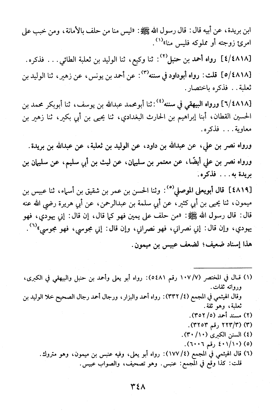 4818 / 4 - رَوَاهُ أَحْمَدُ بْنُ حَنْبَلٍ: ثَنَا وَكِيعٌ، ثَنَا الْوَلِيدُ بْنُ ثَعْلَبَةَ الطَّائِيُّ ... فَذَكَرَهُ.
