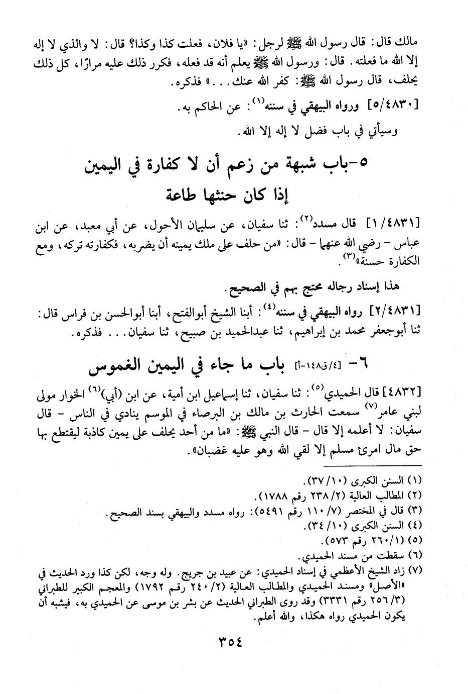 5 - بَابُ شُبْهَةِ مَنْ زَعَمَ أَنْ لَا كَفَّارَةَ فِي الْيَمِينِ إِذَا كَانَ حَنَثَهَا طَاعَةً