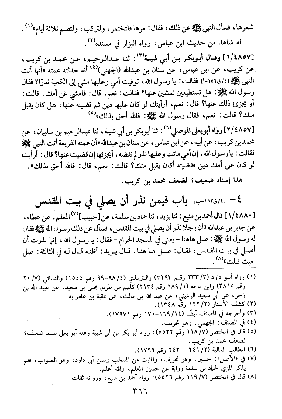 4- بَابٌ فِيمَنْ نَذَرَ أَنْ يُصَلِّيَ فِي بَيْتِ الْمَقْدِسِ