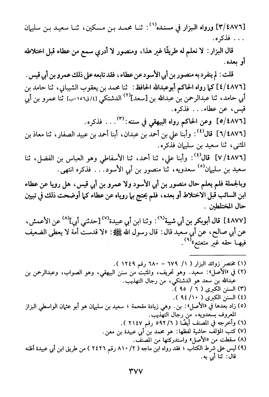 4876 / 7 - قَالَ: وأبنا عَلِيٌّ، ثَنَا أَحْمَدُ، ثَنَا الْأَسْفَاطِيُّ وَهُوَ الْعَبَّاسُ بن الفضل، ثنا سعيد بن سليمان سَعْدَوَيْهِ، ثَنَا مَنْصُورُ بْنُ أَبِي الْأَسْوَدِ ... فَذَكَرَهُ انْتَهَى.