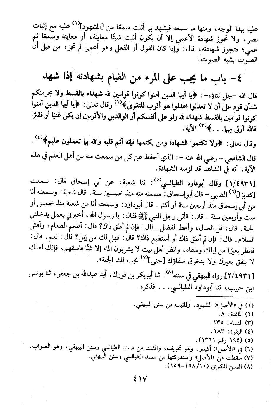 4 - بَابُ مَا يَجِبُ عَلَى الْمَرْءِ مِنَ الْقِيَامِ بِشَهَادَتِهِ إذا شهد