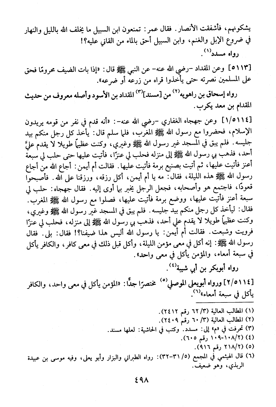 5114 / 2 - وَرَوَاهُ أبو يعلى الموصلي مختصرًا جدًّا: "المؤمن يأكل في معى واحد، والكافر يأكل في سبعة أمعاء".