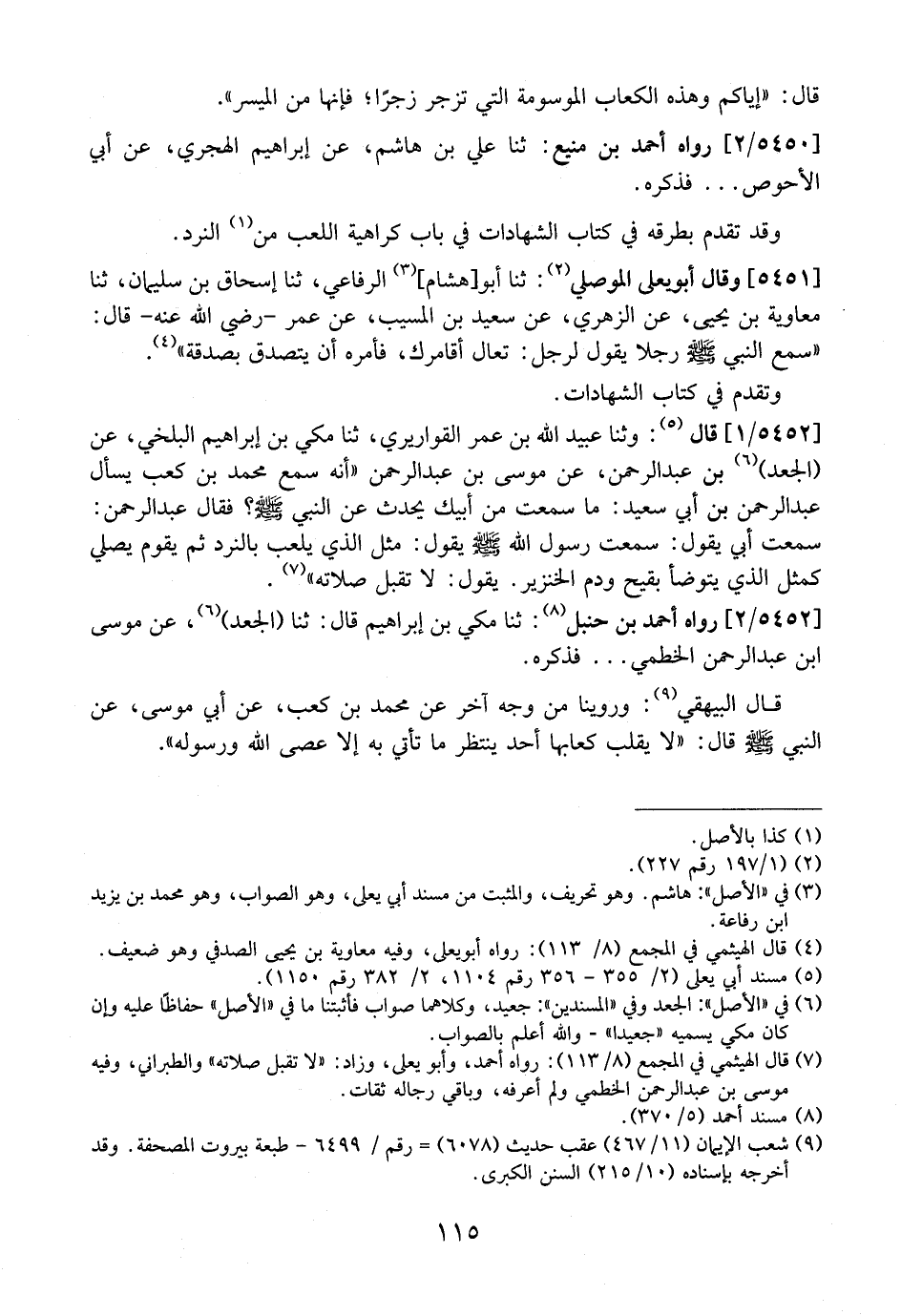 5450 / 2 - رَوَاهُ أَحْمَدُ بْنُ مَنِيعٍ: ثَنَا عَلِيُّ بْنُ هَاشِمٍ، عَنْ إِبْرَاهِيمَ الْهَجَرِيِّ، عَنْ أَبِي الْأَحْوَصِ ... فَذَكَرَهُ.