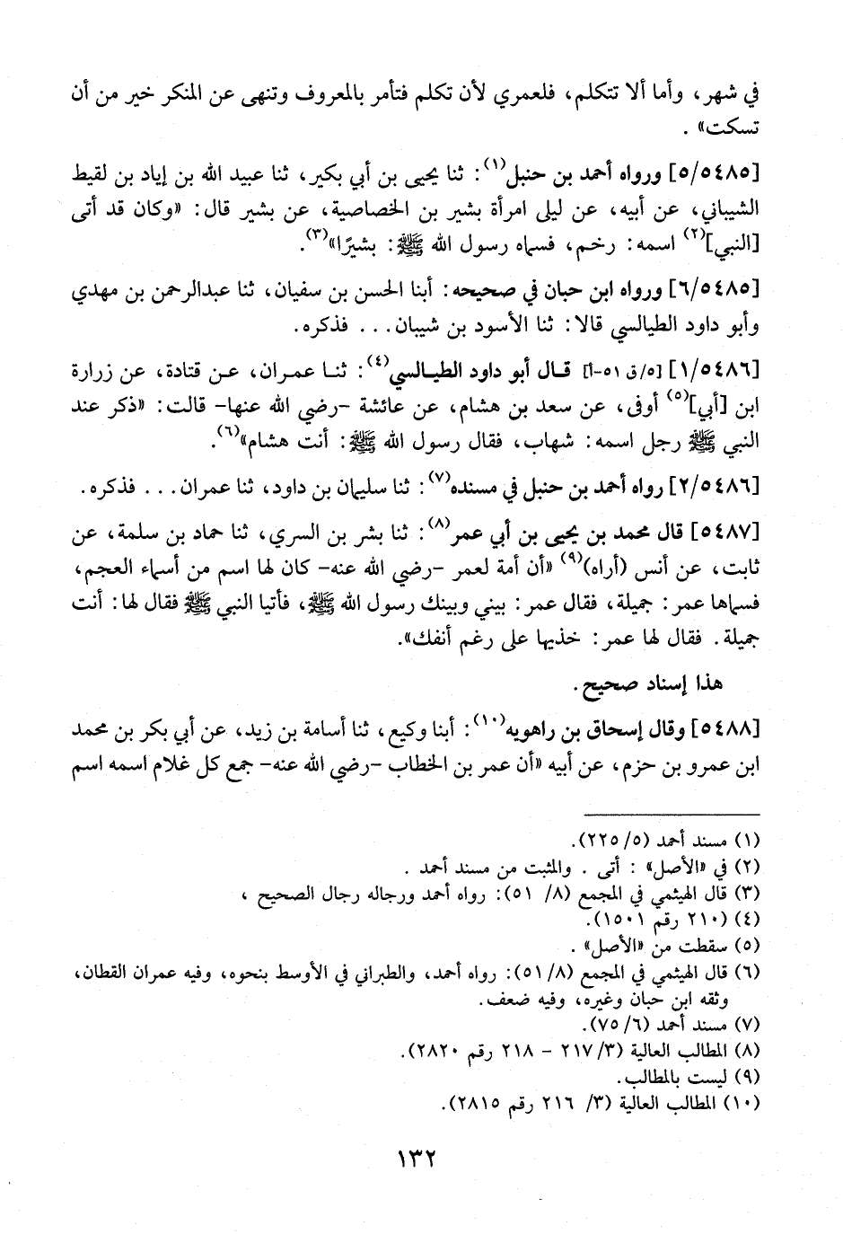 5485 / 5 - وَرَوَاهُ أَحْمَدُ بْنُ حَنْبَلٍ: ثَنَا يَحْيَى بْنُ أبي بكير، ثَنَا عُبَيْدُ اللَّهِ بْنُ إِيَادِ بْنِ لُقَيْطٍ الشيباني، عن أبيه، عن ليلى أمرأة بشير بن الخصاصية، عن بشير قال: "وكان قد أتى النبي - صلى الله عليه وسلم - واسمه: رخم، فَسَمَاهُ رَسُولُ اللَّهِ - صَلَّى اللَّهُ عَلَيْهِ وَسَلَّمَ -: بشيراً".