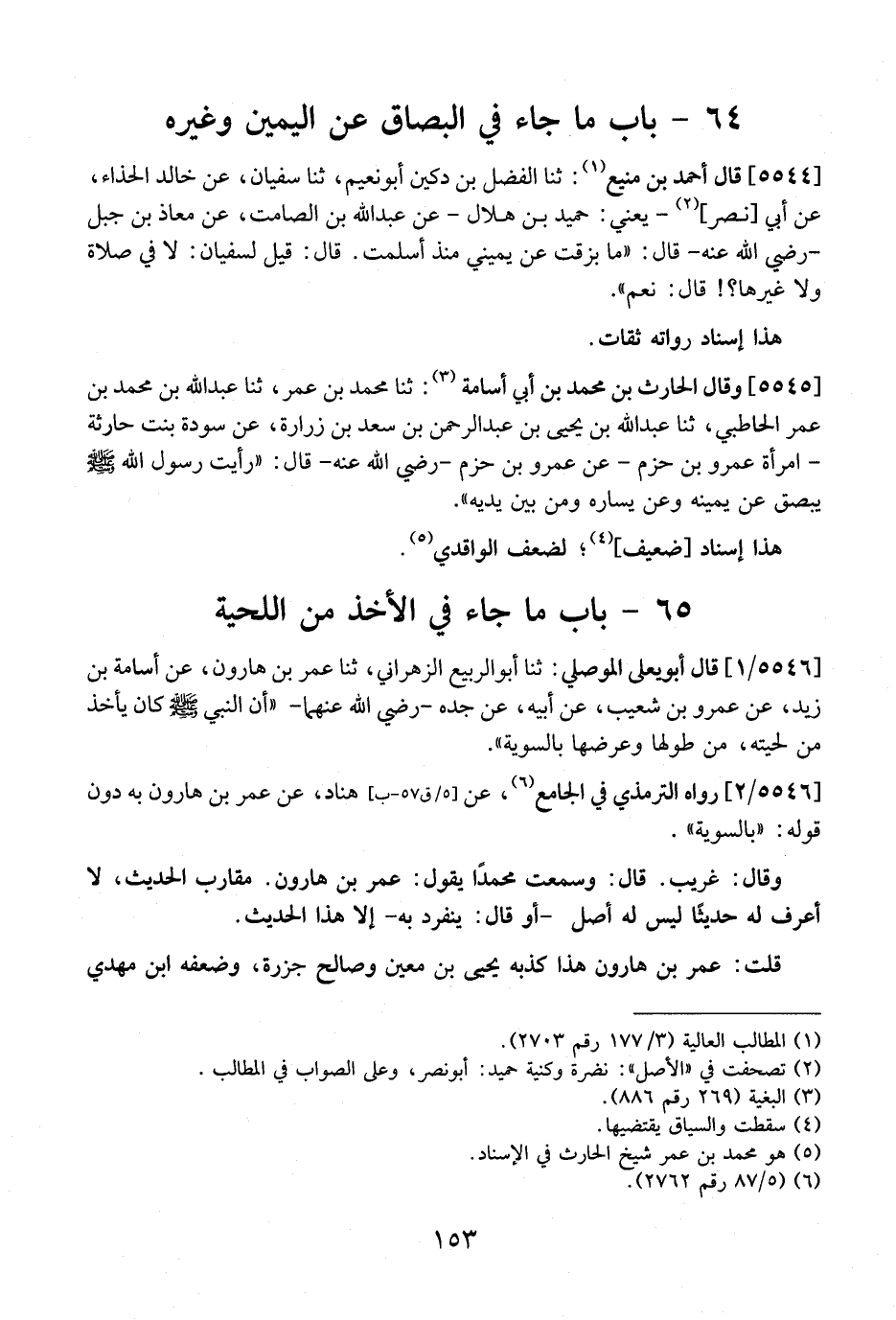 5546 / 1 - قَالَ أَبُو يَعْلَى الْمَوْصِلِيُّ: ثَنَا أَبُو الرَّبِيعِ الزَّهْرَانِيُّ، ثَنَا عُمَرُ بْنُ هَارُونَ، عَنْ أُسَامَةَ بْنِ زَيْدٍ، عَنْ عَمْرِو بْنِ شُعَيْبٍ، عَنْ أَبِيهِ، عَنْ جَدِّهِ- رَضِيَ اللَّهُ عَنْهُمَا- "أَنَّ النَّبِيَّ - صَلَّى اللَّهُ عَلَيْهِ وَسَلَّمَ - كَانَ يَأْخُذُ مِنْ لِحْيَتِهِ، مِنْ طُولِهَا وَعَرْضِهَا بِالسَّوِيَّةِ".