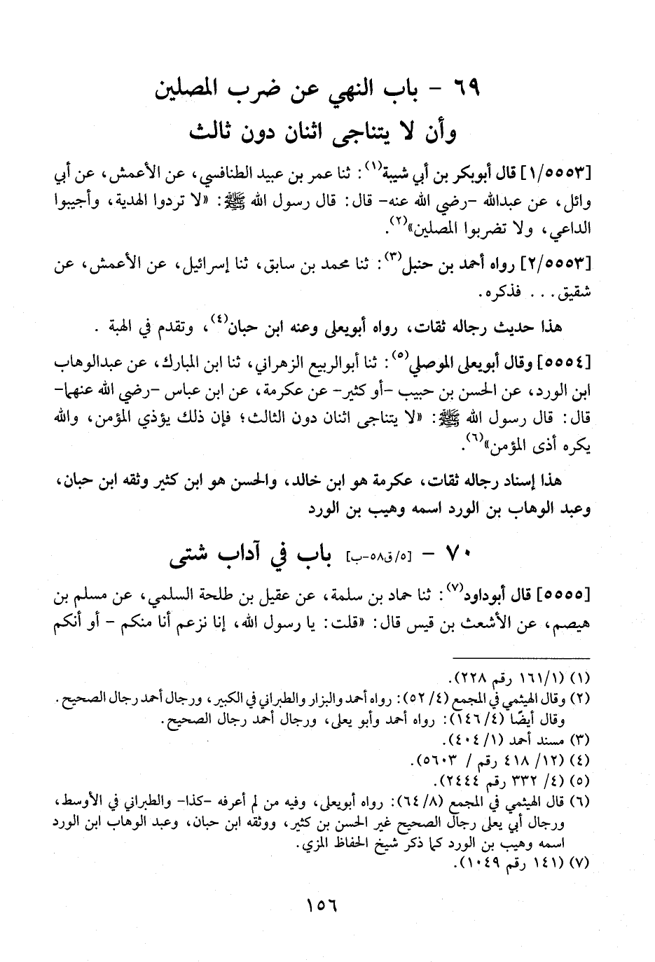 69- بَابُ النَّهْيِ عَنْ ضَرْبِ الْمُصَلِّينَ وَأَنْ لَا يَتَنَاجَى اثْنَانِ دُونَ ثَالِثٍ