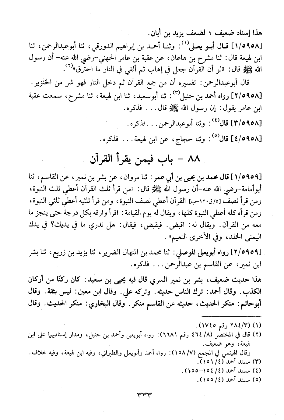 5959 / 2 - رَوَاهُ أَبُو يَعْلَى الْمَوْصِلِيُّ: ثَنَا مُحَمَّدُ بْنُ الْمِنْهَالِ الضَّرِيرُ، ثَنَا يَزِيدُ بْنُ زُرَيْعٍ، ثَنَا بِشْرُ بْنُ نُمَيْرٍ، عَنِ الْقَاسِمِ بْنِ عَبْدِ الرَّحْمَنِ ... فَذَكَرَهُ.