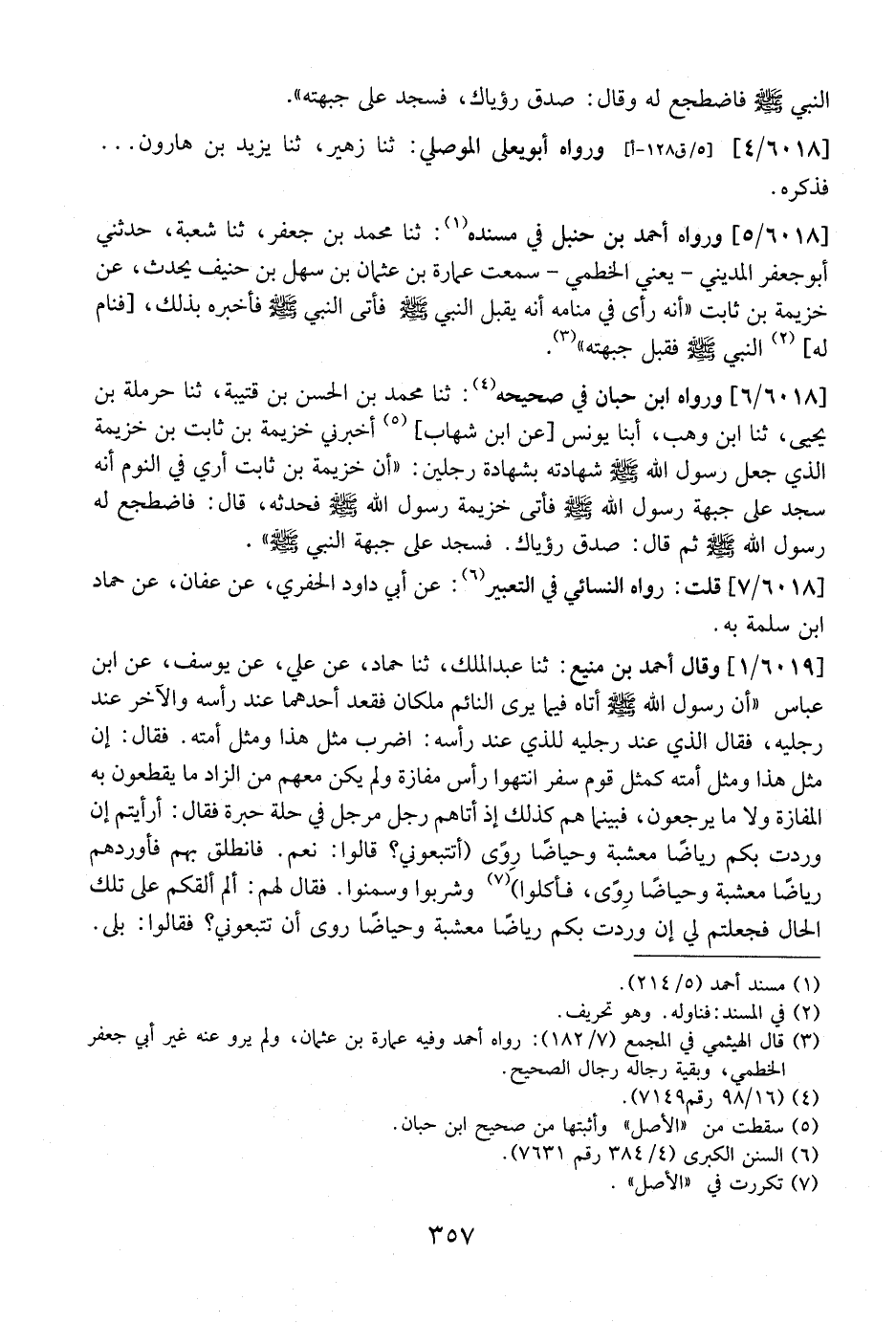 6018 / 6 - وَرَوَاهُ ابْنُ حِبَّانَ فِي صَحِيحِهِ: ثَنَا مُحَمَّدُ بْنُ الْحَسَنِ بْنُ قُتَيْبَةَ، ثَنَا حَرْمَلَةُ بْنُ يَحْيَى، ثَنَا ابْنُ وَهْبٍ، أبنا يونس عن ابن شهاب، أَخْبَرَنِي خُزَيْمَةُ بْنُ ثَابِتِ بْنِ خُزَيْمَةَ الَّذِي جعل رسول الله شَهَادَتَهُ بِشَهَادَةِ رَجُلَيْنِ: "أَنَّ خُزَيْمَةَ بْنَ ثَابِتٍ أري فِي النَّوْمِ أَنَّهُ سَجَدَ عَلَى جَبْهَةِ رَسُولِ اللَّهِ - صَلَّى اللَّهُ عَلَيْهِ وَسَلَّمَ - فَأُتِيَ خُزَيْمَةُ رَسُولَ اللَّهِ - صَلَّى اللَّهُ عَلَيْهِ وَسَلَّمَ - فَحَدَّثَهُ، قَالَ: فَاضْطَجَعَ لَهُ رَسُولُ اللَّهِ - صَلَّى اللَّهُ عَلَيْهِ وَسَلَّمَ - ثُمَّ قَالَ: صَدِّقْ رُؤْيَاكَ. فَسَجَدَ عَلَى جَبْهَةِ النَّبِيِّ - صَلَّى اللَّهُ عَلَيْهِ وَسَلَّمَ -.
